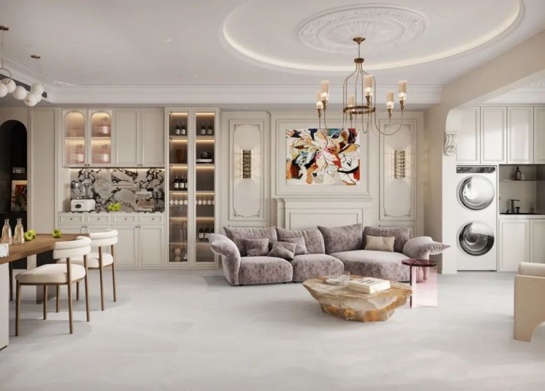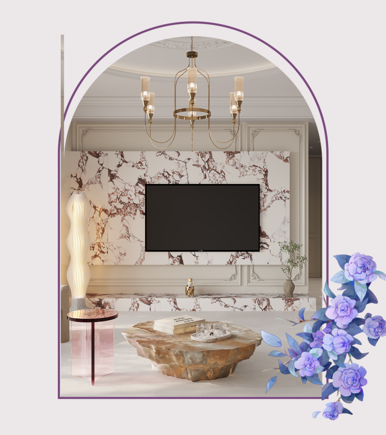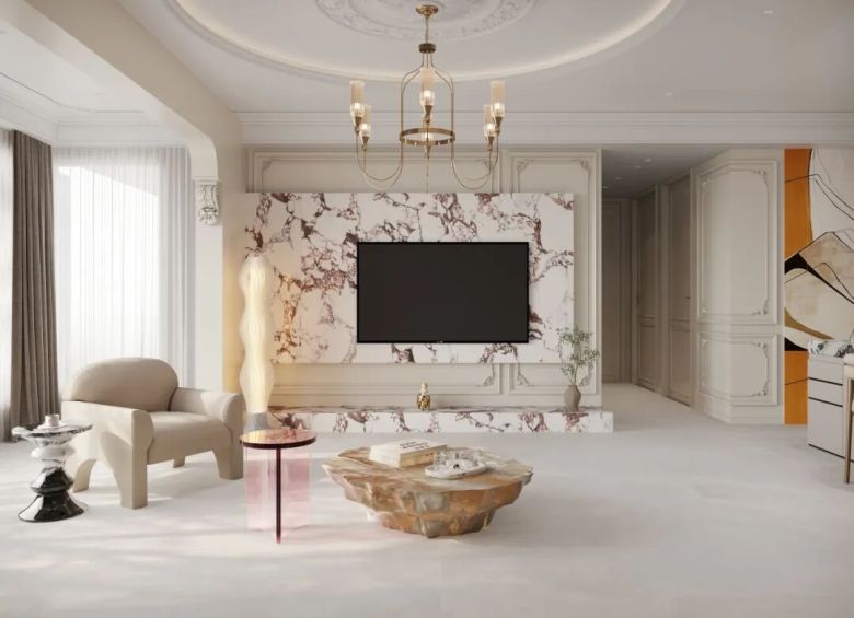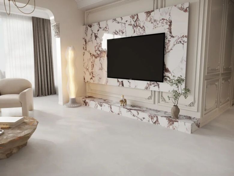 作为全屋的中心,客厅地面优选汇亚【汉白玉】,50°超白坯体的加持下,让通透的温润肌理,与自然蜿蜒的玉质纹理相辅相成。丝绒质感在空间映出细腻的光影变化,纯粹利落,直抵人心。