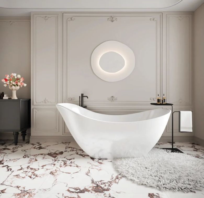 踏入卫浴空间,干湿分离的布局,白色浴缸安静嵌入其中,质感肌理间碰撞出轻奢火花,打造出兼顾实用功能与艺术格调的沉浸式沐浴空间。