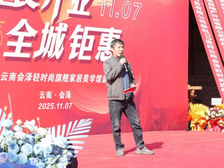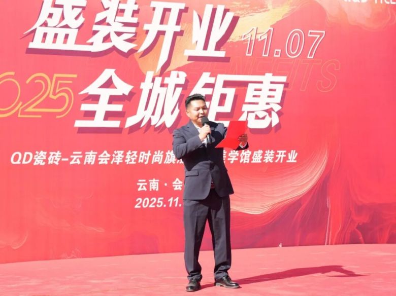 作为东道主的会泽QD瓷砖总经销邱学坤,向所有到场的嘉宾领导表示热烈的欢迎和诚挚的感谢。他提到,会泽QD瓷砖的盛装开业,是与品牌深化战略合作、共拓市场版图的又一重要里程碑,期待与合作伙伴们继续携手同行,为当地消费者带来更多高品质家居体验。