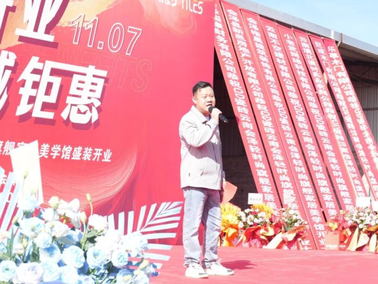 QD瓷砖云贵大区总监周宏首先代表QD瓷砖总部,对云南会泽旗舰店开业致以衷心的祝贺。