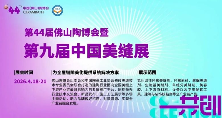 第九届中国美缝展,是由佛山陶博会组委会和中国陶瓷工业协会瓷砖美缝技术专业委员会联合打造的建陶行业面向全国美缝上下游产业链最具影响力的专属推广平台,自首办以来已连续成功举办了八届,同期举办行业技术交流会、新品发布、施工工艺展示等多场主题活动,助力品牌做好招商、对接资源、实现全产业链融合发展。