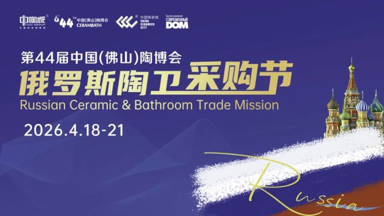4月18-21日,佛山陶博会、中国陶瓷城再次携手俄罗斯家居媒体Modern Home举办第六届“俄罗斯陶卫采购节”,并于4月18日下午举办《中国-俄罗斯商务对接会》,届时将组织近俄罗斯建筑商、开发商、批发商等优质买家与佛山陶卫企业深入交流最新市场情况及对接商务需求。