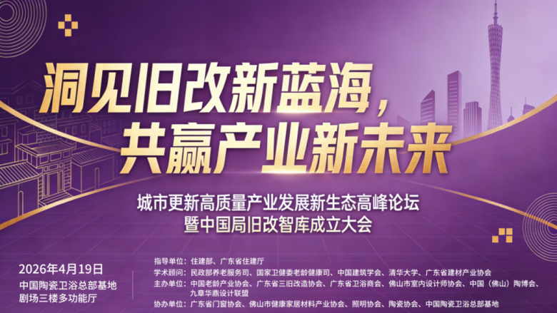 4月19日,“城市更新高质量产业发展新生态高峰论坛暨中国局旧改智库成立大会”将在中国陶瓷卫浴总部展馆隆重举行。本次活动由住建部、广东省住建厅等权威单位指导,汇聚清华大学等顶尖学术机构及多家国家级、省级行业协会共同主办。旨在搭建跨部门、跨学科、跨产业的高端对话平台,深入探讨旧改政策与产业融合新路径,并正式成立“中国局旧改智库”,构建面向未来的旧改产业研究体系与协同发展生态,为陶瓷卫浴行业抢抓万亿存量市场提供强有力的智力支持与资源对接。