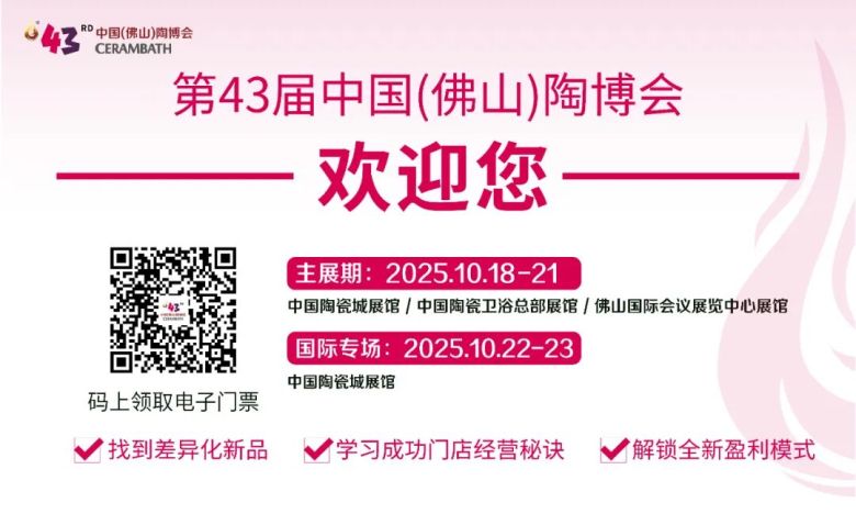 第43届佛山陶博会不仅有800+品牌、30000+新品集中亮相,更有50+场品牌活动! 选品牌 观新品 看趋势 就来第43届中国(佛山)陶博会! 今天 小陶将为大家提前揭秘 鹰牌新材、华岳、能亮、萨兰特、圣德保瓷砖、HD哑质瓷砖、卡木木纹砖、丹豪大自然木纹砖、广东芬迪、三星岩、思力&猫和老鼠、麦歌锁扣瓷砖、瓷洛克 等13家优质参展品牌 携新品惊喜亮相 第43届中国(佛山)陶博会 一起来看看吧! 鹰牌新材 ▶中国陶瓷卫浴总部展馆Z10展位 鹰牌新材是天安新材旗下专注美化改造需求,致力于为消费者提供长期且可持续的解决方案的品牌,创立于1974年,总部位于“中国陶都”广东省佛山市。在整合了母公司的泛家居生态链的基础上,以新型环保饰面材料为核心,围绕装配式内装概念,在产品研发和安装交付环节进行了深化和延伸,开启了墙板,地板,瓷砖产品一体化销售和服务的集团新战略 ▼HPL石晶地板 ▼安芯板 ▼焕妆墙衣 华岳&金斯威 ▶中国陶瓷城展馆 A05展位 淄博华岳建筑陶瓷有限公司、金斯威建筑陶瓷有限公司均是村办集体实业集团公司,集研发、设计、生产和销售为一体的现代化陶瓷企业。 公司拥有雄厚的技术力量和行业最尖端的自动化生产线我们的人才结构比例合理,拥有专业的研发、设计、管理和营销团队,从而能在激烈的市场竞争中脱颖而出,稳步发展壮大。 ▼芭莎无界水刀艺术拼花系列600×1200mm ☟点击了解更多 能亮手工砖 ▶佛山国际会议展览中心展馆F17展位 能亮现代手工砖——以开发定义边界 从手工温度到工业精度,能亮不断打磨材料语言,以设计驱动生产,以实验精神拓展瓷砖的可能性。我们不仅制造产品,更持续开发新的表面、色彩与形态。在变化中寻找平衡,在平衡中创造更新。 ▼3D编织系列 ▼3D花苞手工砖 ☟点击了解更多 萨兰特 ▶中国陶瓷卫浴总部展馆D6、D7、Z6展位 萨兰特,是宝达旗下专业成长型品牌,集研发、制造、销售和服务为一体的绿色环保型陶瓷材料供应商。意在传承意大利现代美学精髓,传递高雅、自然、简约而独特的生活态度。专注于自主研发和弹性制造,充分呈现产品的设计属性和功能属性,注重室内外空间用材的相互呼应;是现代家装、高端商业、优质工装、市政工程和品质地产等的首选。 圣德保瓷砖 ▶中国陶瓷卫浴总部展馆 Z3展位 圣德保瓷砖始创于1998年,总部位于“中国陶都”——广东佛山。荣获第一批“佛山制造”认证的品牌。 2025年圣德保品牌定位升级为“打破品牌溢价,重塑高质平价标准”为使命,致力于“成为质价比瓷砖的首选品牌”。做有品质的瓷砖、有温度的品牌,选圣德保,装放心家。 ▼MAXPLUS岩板大理石(亮光) ▼TIMES时光复刻釉(哑光) HD哑质瓷砖 ▶中国陶瓷卫浴总部展馆 Z8展位 HD,中高端哑光质感瓷砖品牌,成立于中国陶瓷之都广东佛山。以浩瀚无垠的神秘宇宙为灵感,将星球、礁海、建筑、岩层之中经历时间风化、岁月沉淀的自然纹理,溶解于每一块瓷砖。用肌理不同、触感各异的【哑质瓷砖】作为载体,表达品牌理念,传递生活态度。HD,探索瓷砖艺术,重塑哑质风格。于一砖之间,观宇宙,见生活。 ▼四季粉 ▼西西里砂岩 卡木木纹砖 ▶中国陶瓷卫浴总部展馆·Z9展位 卡木,专注木纹砖。2018年成立,我们不仅是”佛山品牌“,更是”佛山制造“ 联合意大利设计工作室,研发不被潮流规训,永不过时的经典花色,做年轻人”更省心“的木纹砖产品,有颜有料。 丹豪大自然木纹砖 ▶中国陶瓷卫浴总部展馆 南区E02展位 大自然瓷砖是大自然家居产业集群中最为年轻的板块,由2023年立项,2025年初构建完成面市。 新品类的发展充满市场潜力,但也面临激烈竞争,需要稳定、完善的系统得以突出重围。发展迄今,大自然瓷砖已具备稳定的生产基地。其产品开发流程、工艺品质标准和销售体系搭建、日常运营管理都有了完善的标准。 《恋恋木舍》系列 ☟点击了解更多 广东芬迪 ▶中国陶瓷卫浴总部展馆东区【B01】 广东芬迪陶瓷有限公司是 时尚与品质的瓷砖先锋 专注于高端瓷砖产品的研发、生产与销售,以卓越的品质和前沿的设计引领行业风尚。 旗下的产品丰富多样,其中,备受瞩目的奢品系列「粉豹珍兽」 ,以独特的粉色豹纹主题,完美诠释了时尚与奢华。一经推出便成为市场焦点。 瓷行业的时尚传奇。 ▼「粉豹珍兽」系列 ☟点击了解更多 三星岩 ▶中国陶瓷卫浴总部展馆·Z11展位 三星岩,隶属广东三星建材有限公司,专注高端岩板领域,与全球顶级品牌FIANDRE、FONDOVALLE深度合作,融合意式工业力与东方美学,为高端人居与商业空间提供全维度的意奢解决方案。品牌以“纯进口、大师协作、国产创新”三大系列为核心,严选材质、精研工艺,展现非凡的空间表现力。设有8000㎡国际化展馆,打造沉浸式体验,诠释岩板的奢华质感与设计艺术。 ▼尚萃系列 思力&猫和老鼠 ▶中国陶瓷卫浴总部展馆Z5展位 思力瓷砖&猫和老鼠瓷砖,一个专注于特色砖,艺术花砖研发与生产的潮兴品牌,聚焦生活美学的法式花砖代表,以独特的工艺与设计,将法式风情,中古风,复古风等一系列色彩元素融入家居空间,品牌采用先进生产工艺和优质原材料,专为艺术家居打造兼具颜值与实用性的花砖产品! ▼巴塞罗系列 ▼居里系列 ▼塞纳系列 麦歌锁扣瓷砖 ▶中国陶瓷卫浴总部展馆 Z12展位 麦歌锁扣快装瓷砖,是我公司独立研发,拥