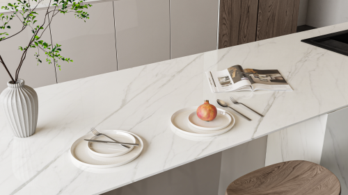 【晶玉透光石】实现全方位无死角精密对纹,整体花色衔接自然连贯。表面纹理更立体,层次感更强,形成浑然天成的石纹效果。