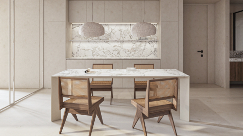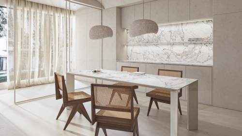 【晶玉透光石】实现全方位无死角精密对纹,整体花色衔接自然连贯。表面纹理更立体,层次感更强,形成浑然天成的石纹效果。