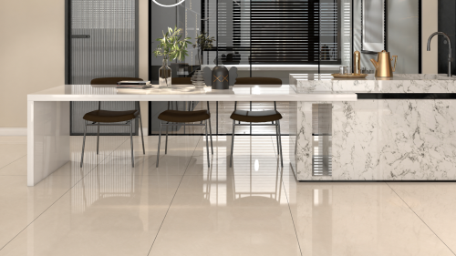 亮面砖会反射房间里面的自然光、 灯光从而使房间显得更宽敞、更明亮,花纹的质感更鲜亮,在灯光下效果会非常美观,用来装饰客厅餐厅等大空间区域也能使整个家装变得鲜明而有活力。