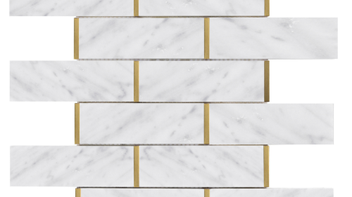 Natural stone mosaic, carrara white mixed metal gold mosaic, marble mosaic.