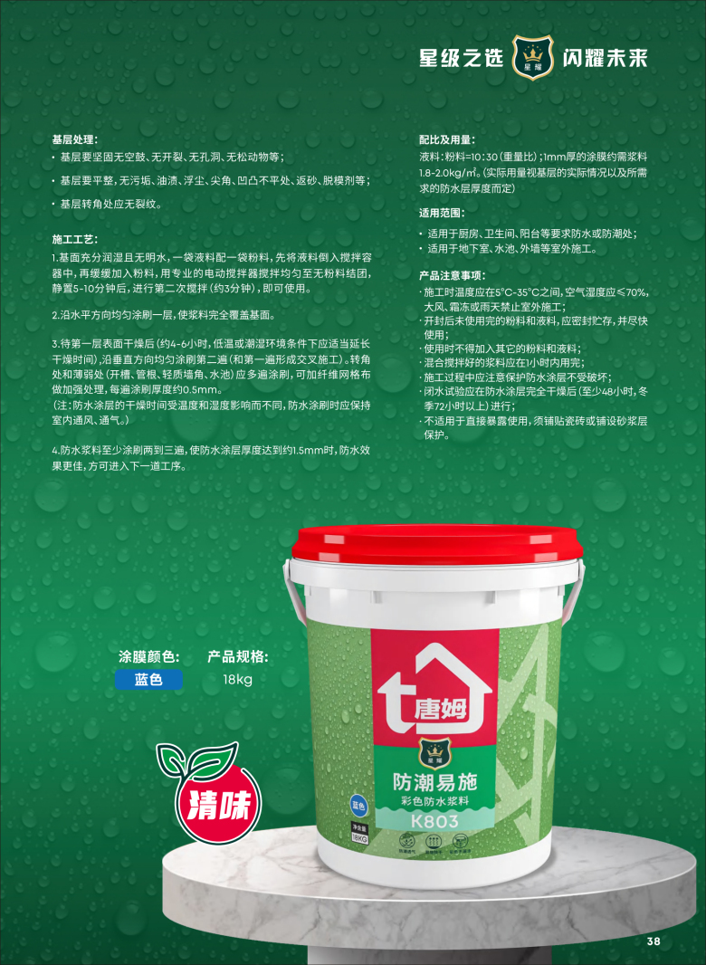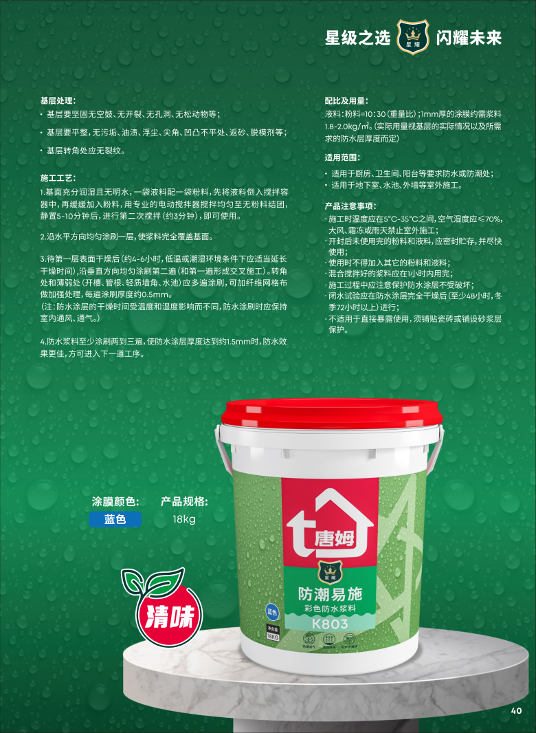 星耀K803防潮易施 彩色防水浆料