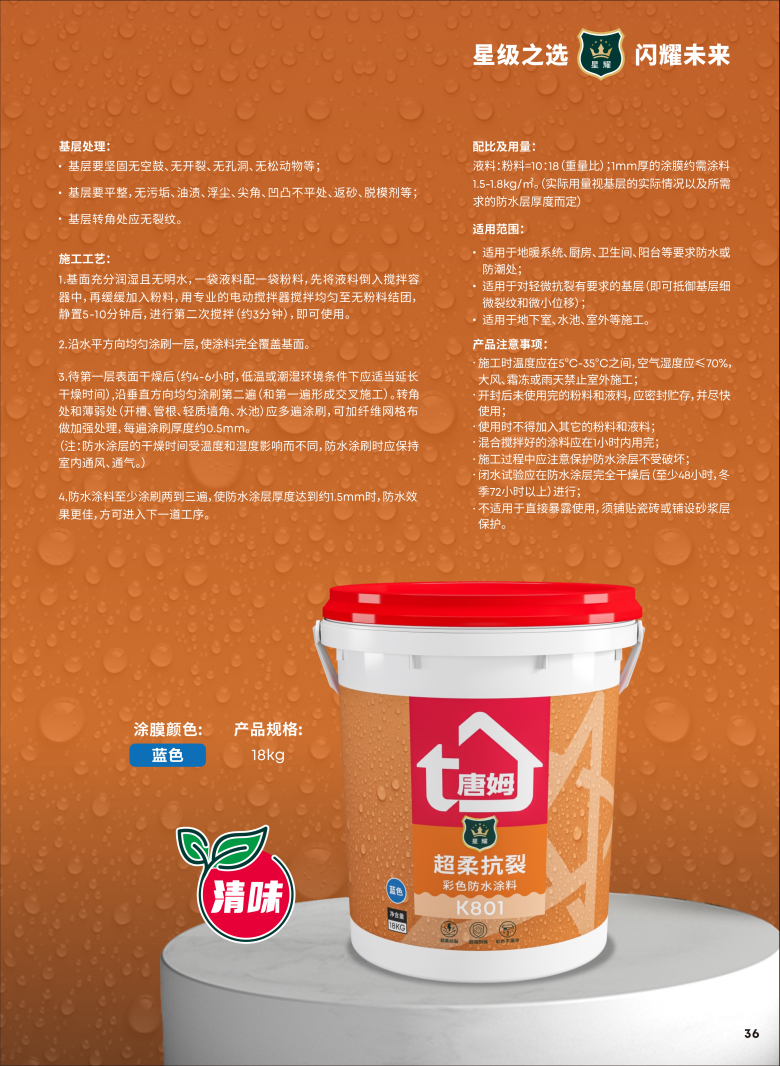 星耀K801超柔抗裂 彩色防水涂料