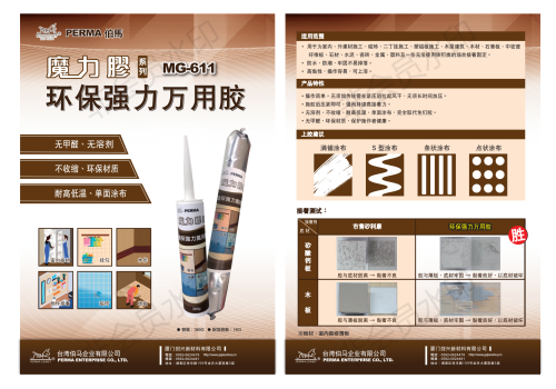 用于室内、外建材施工、瓷砖、二丁挂施工、木屋建筑、木材、石膏板、中密度纤维板、石材、水泥、瓷砖、金属、塑料及一些无法使用铁钉类的场合接着固定。