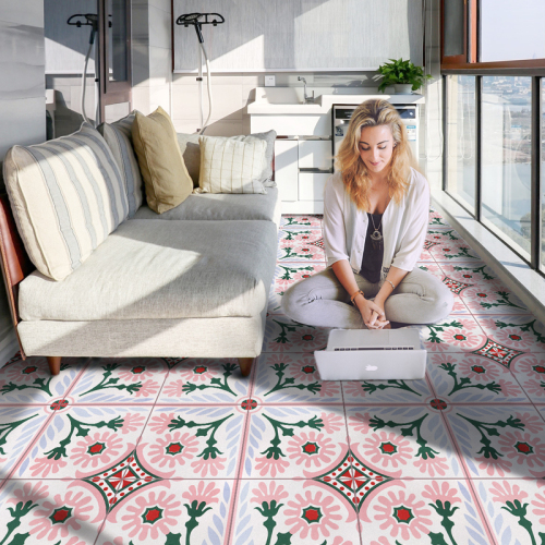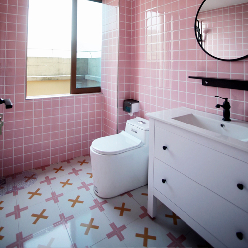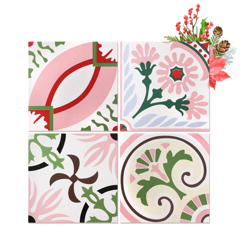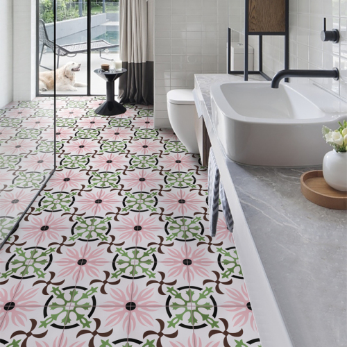 复古粉色小花砖300