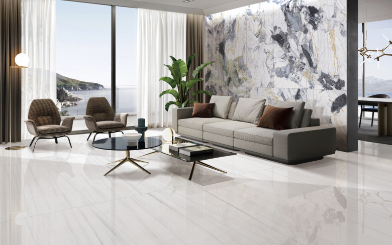 格仕陶磁砖 顶级星白 大板瓷砖 1500x750mm 客餐厅 现代简约风格装修