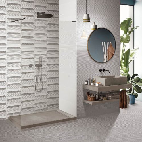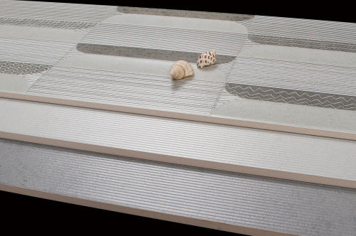 数码化胶水+干粒,干粒附着在砖面上,形成凹凸质感,可以实现按需制作,效果更自然,更丰富,装饰效果更强。