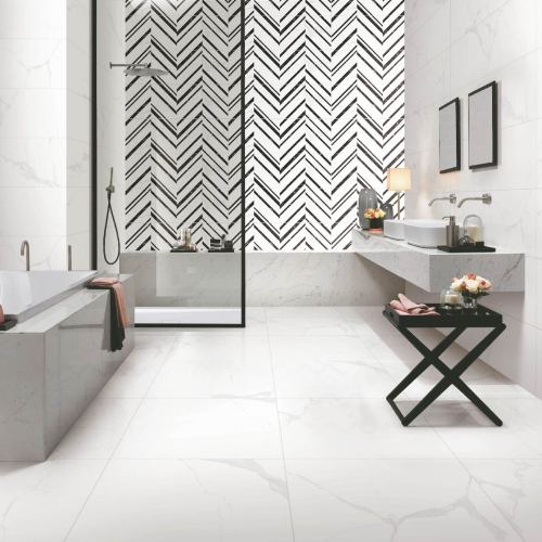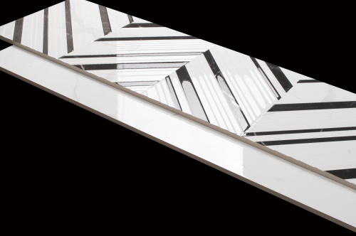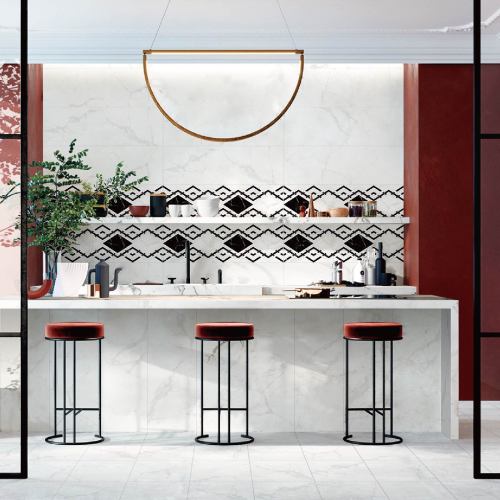 产品主砖雪山原石搭配混合花片的几何线条,与风格派独特的“几何线条-完美组合”和原色、非色组合默契,所形成斜线或三角形,摒弃现实世界的复杂枝节,只以简单的直线条塑造个性派。