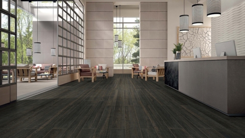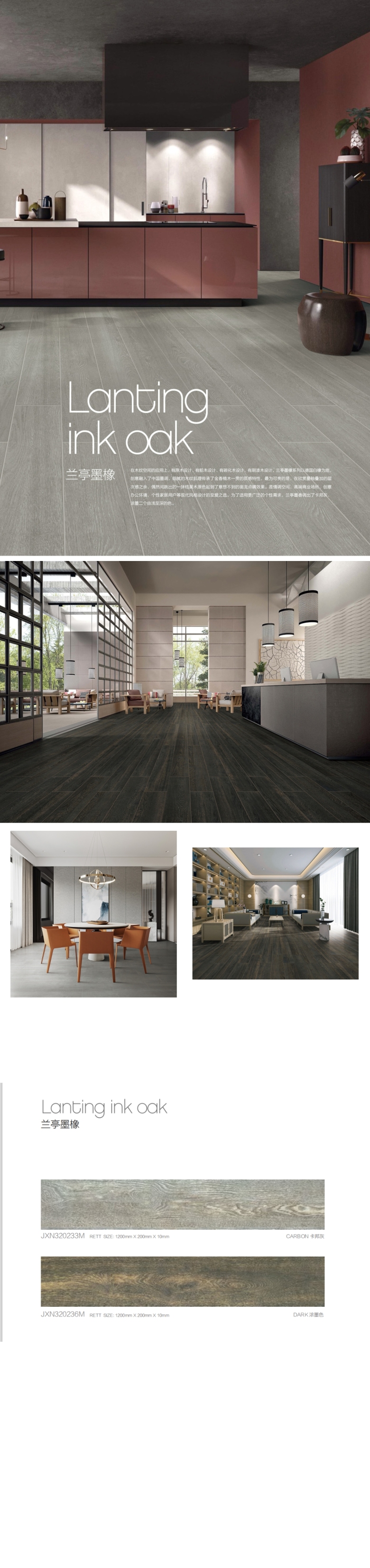 在木纹空间的应用上,有原木设计、有船木设计、有碳化木设计、有刷漆木设计,兰亭墨香系列以德国白橡为底,创意融入了中国墨调,细腻的木纹肌理传承了金香楠木一贯的质感特性,最为可贵的是,在欣赏墨釉叠加的层次感之余,偶然间跳出的一抺桔黄木原色起到了意想不到的画龙点睛效果。是情调空间、高端商业场所、创意办公环境、个性家居用户等现代风格设计的至爱之选。为了适用更广泛的个性需求,兰亭墨香调出了卡邦灰、浓墨两个由浅至深的色。