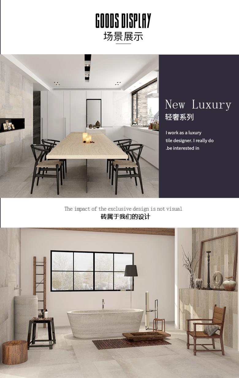 北欧客厅卧室地砖墙砖600*1200釉面复古瓷砖