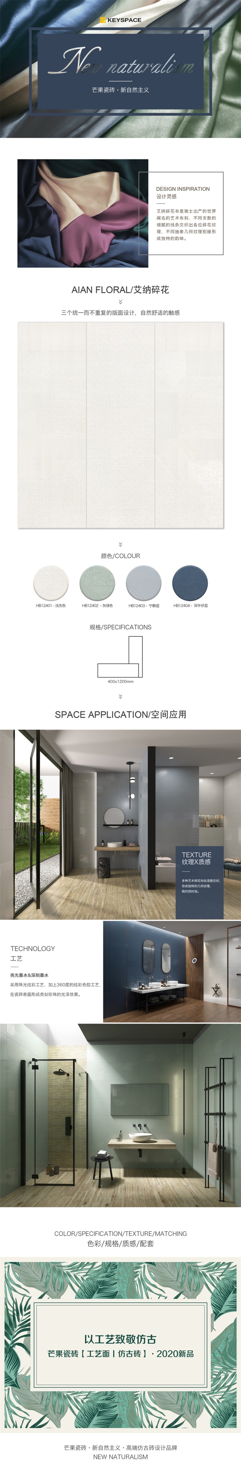 全新【工艺面|仿古砖】新自然主义厨卫空间用砖-艾纳碎花系列400*1200