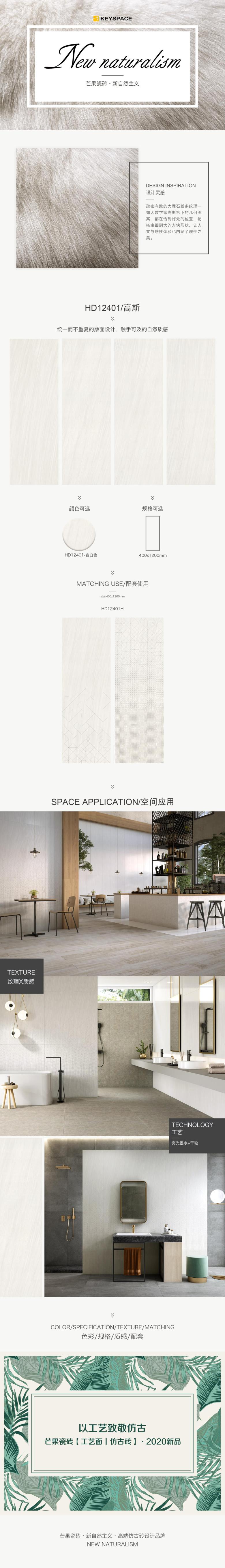 全新【工艺面|仿古砖】新自然主义厨卫空间卧室背景墙用砖-高斯系列400*1200