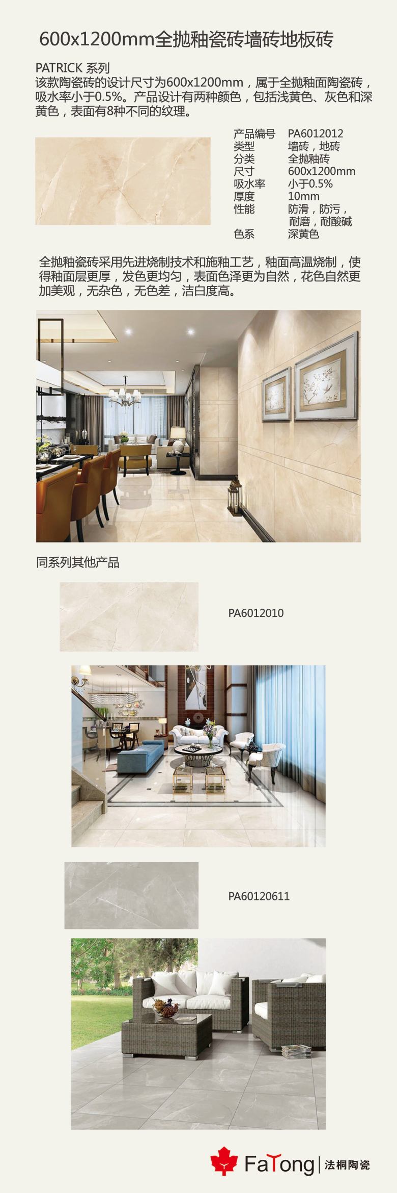 600x1200mm全抛釉瓷砖墙砖地板砖