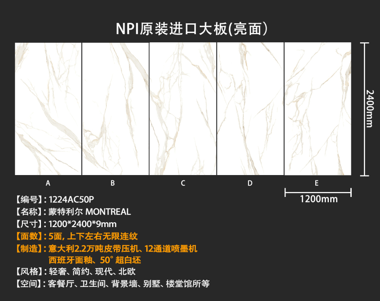 NPI 1200*2400进口岩板 大板 通体 连纹 AC50 西雅图