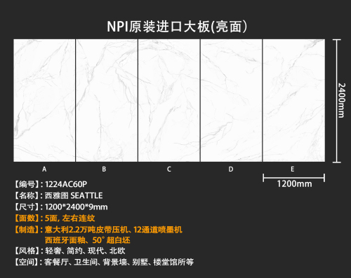 NPI 1200*2400进口岩板 大板 通体 连纹 AC60 西雅图