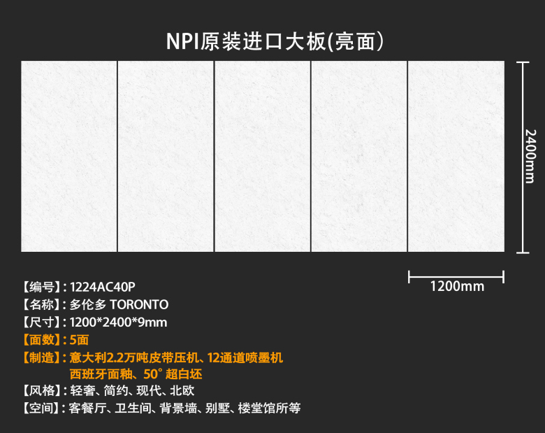 NPI 1200*2400 进口岩板 大板 通体 连纹 AC40 多伦多