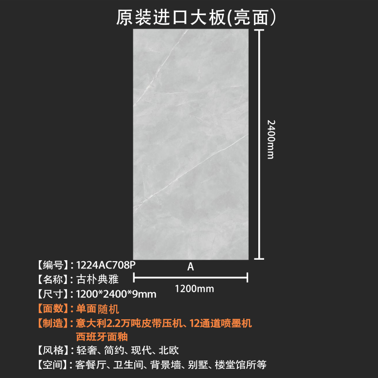 NPI 1200*2400 进口岩板 大板 通体 连纹 AC708 古朴典雅