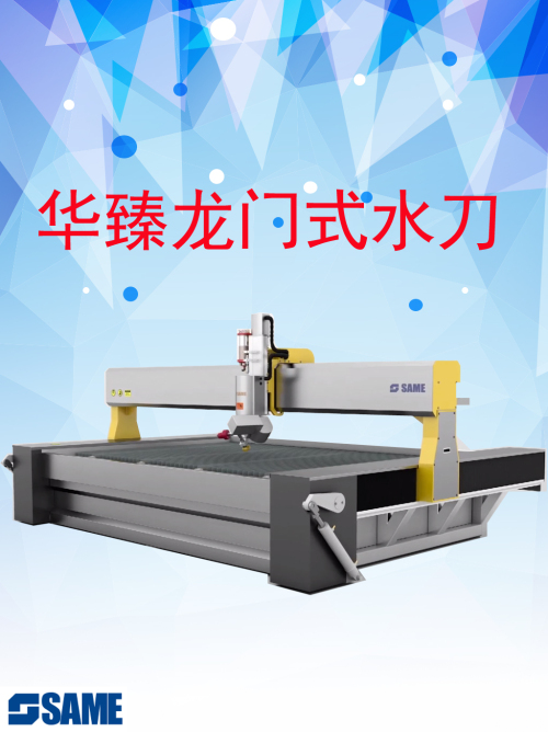 华臻龙门式水刀工作平台是由大型五轴龙门数控加工中心整体加工而成,X轴及Y轴大梁均采用双层防尘防水结构,采用优质滚珠丝杆导轨及总线数控系统驱动,从而确保了水刀的控制精度及切割精度能优于同行产品。此款水刀可选配台面式翻板架。