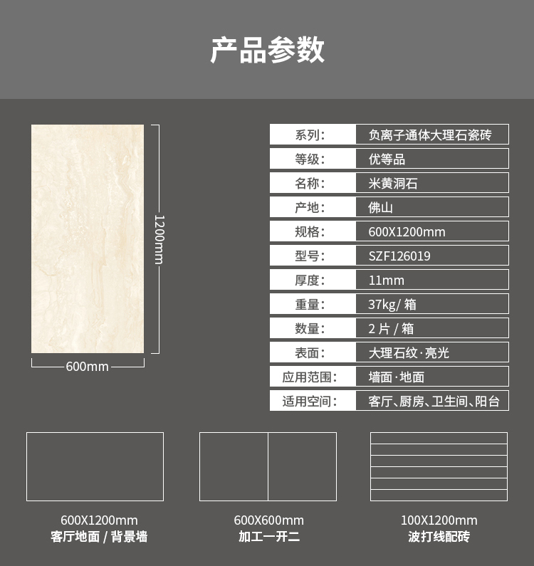 盛世名嘉瓷砖 负离子通体大理石瓷砖 600x1200 米黄洞石
