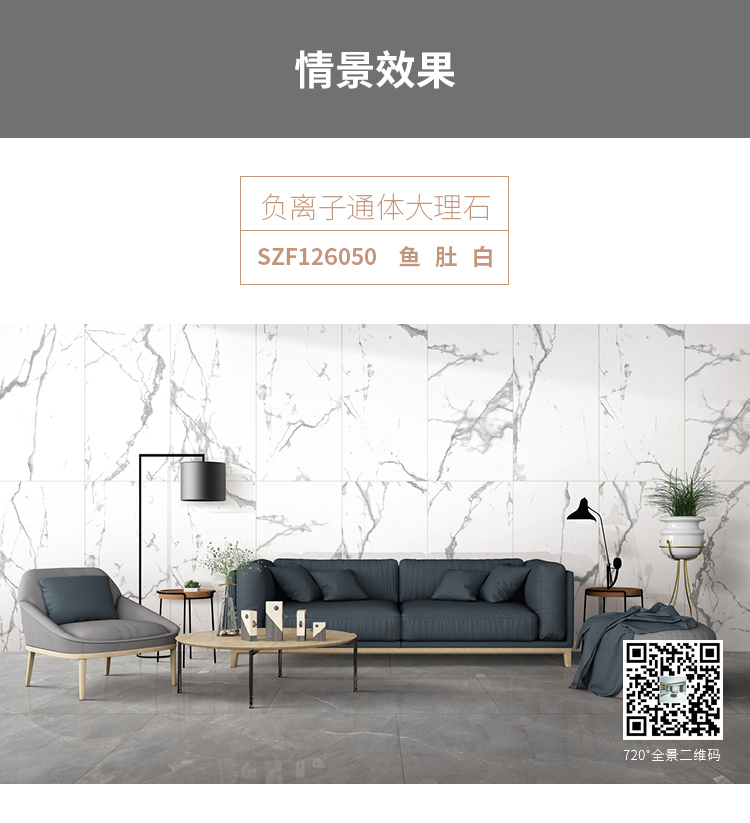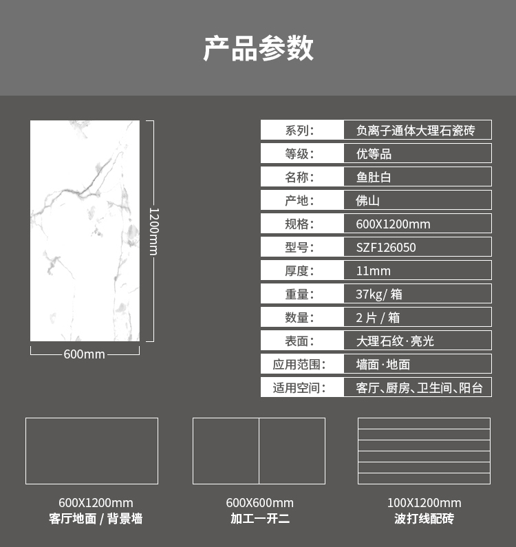 盛世名嘉瓷砖 负离子通体大理石瓷砖 600x1200 鱼肚白