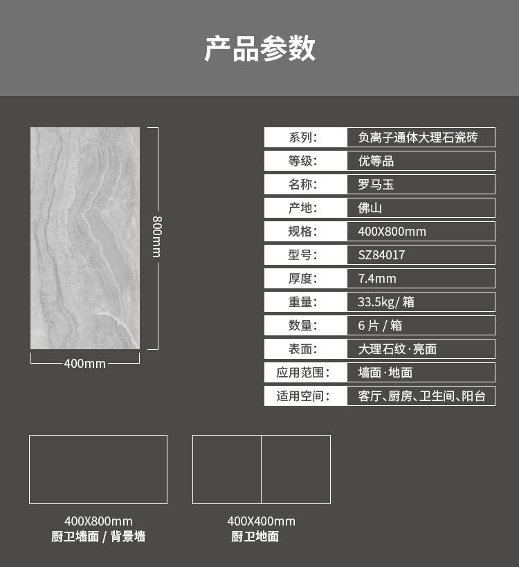 盛世名嘉瓷砖 负离子通体大理石瓷砖 400x800 罗马玉