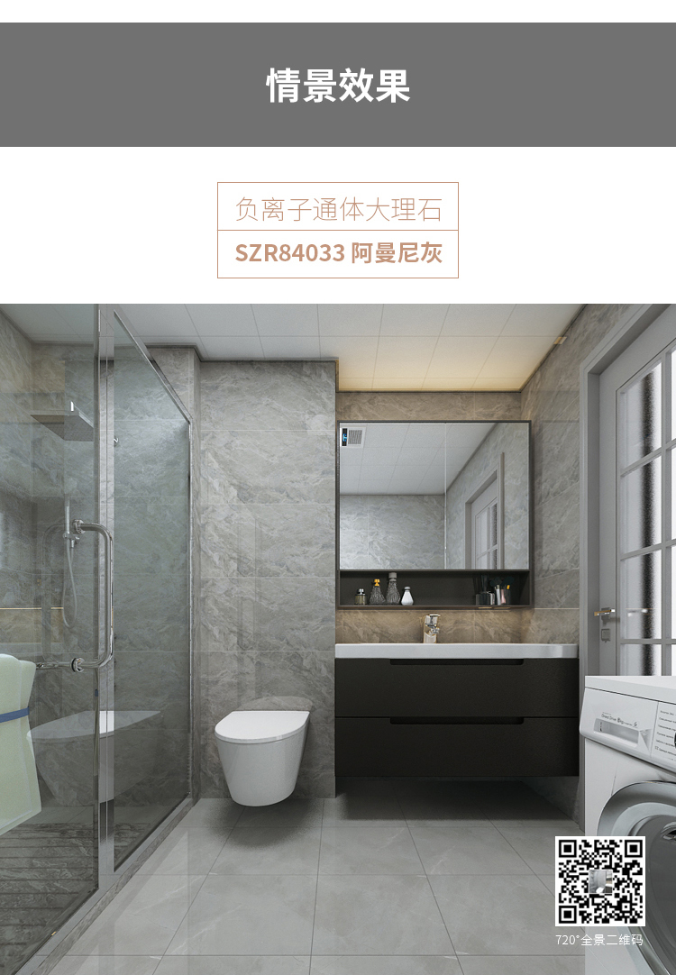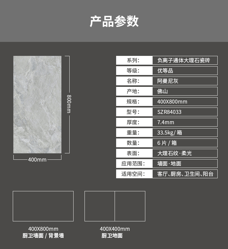盛世名嘉瓷砖 负离子通体大理石瓷砖 400x800 柔光 阿曼尼灰