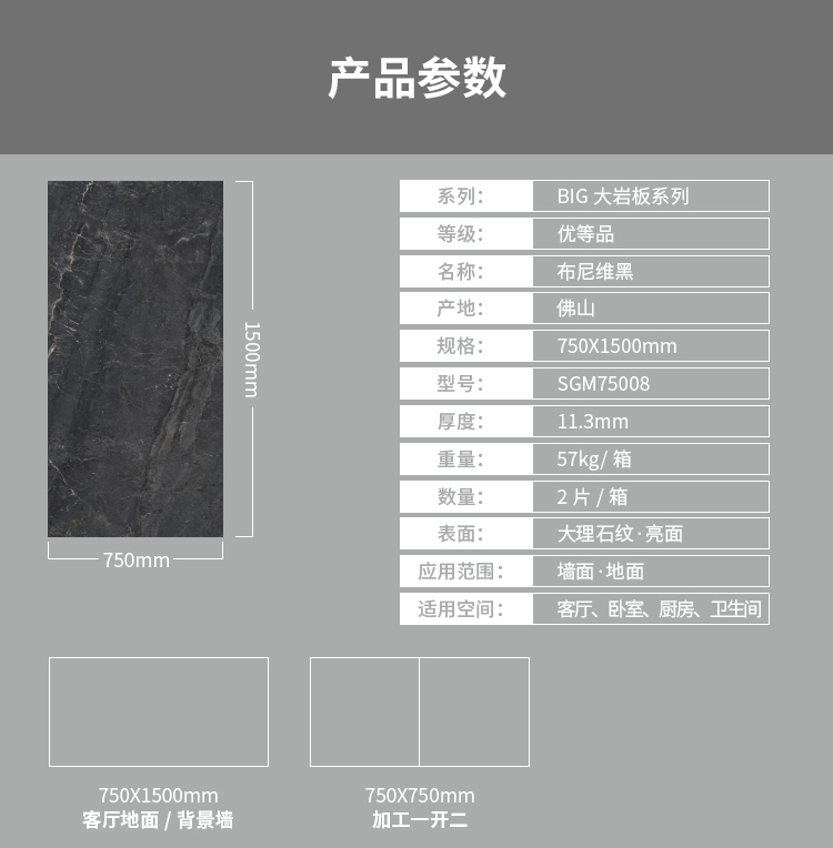 盛世名嘉瓷砖 BIG大岩板系列 750x1500mm 布尼维黑