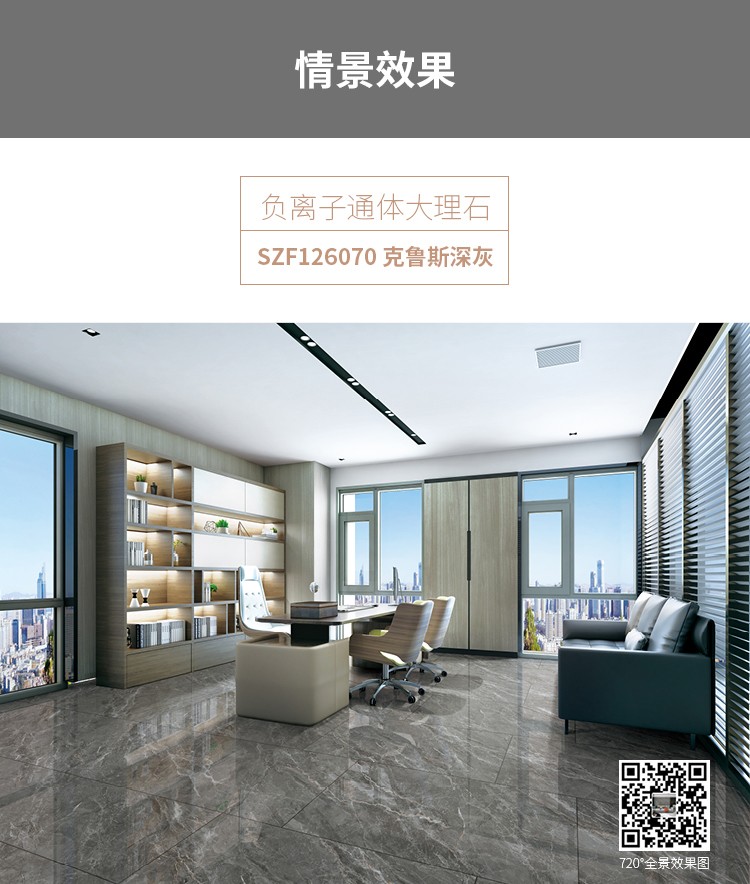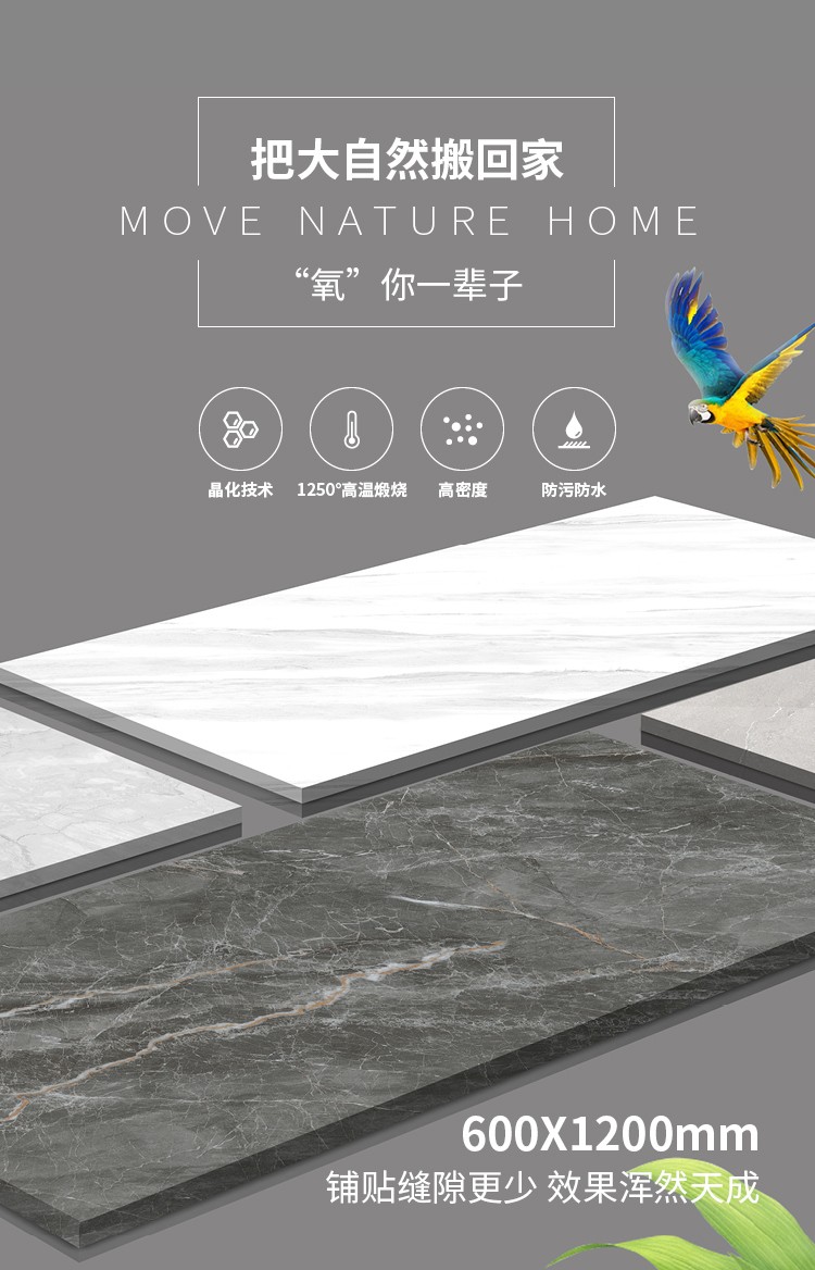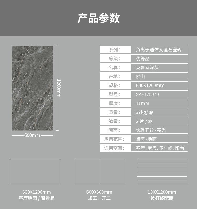盛世名嘉瓷砖 负离子通体大理石瓷砖 600x1200 克鲁斯深灰
