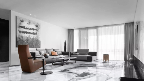 营造出通畅的空间感,气势恢宏中又不失优雅、纯净。这种基础色调更加的好搭配,现代简约、轻奢都再好呼应不过了。