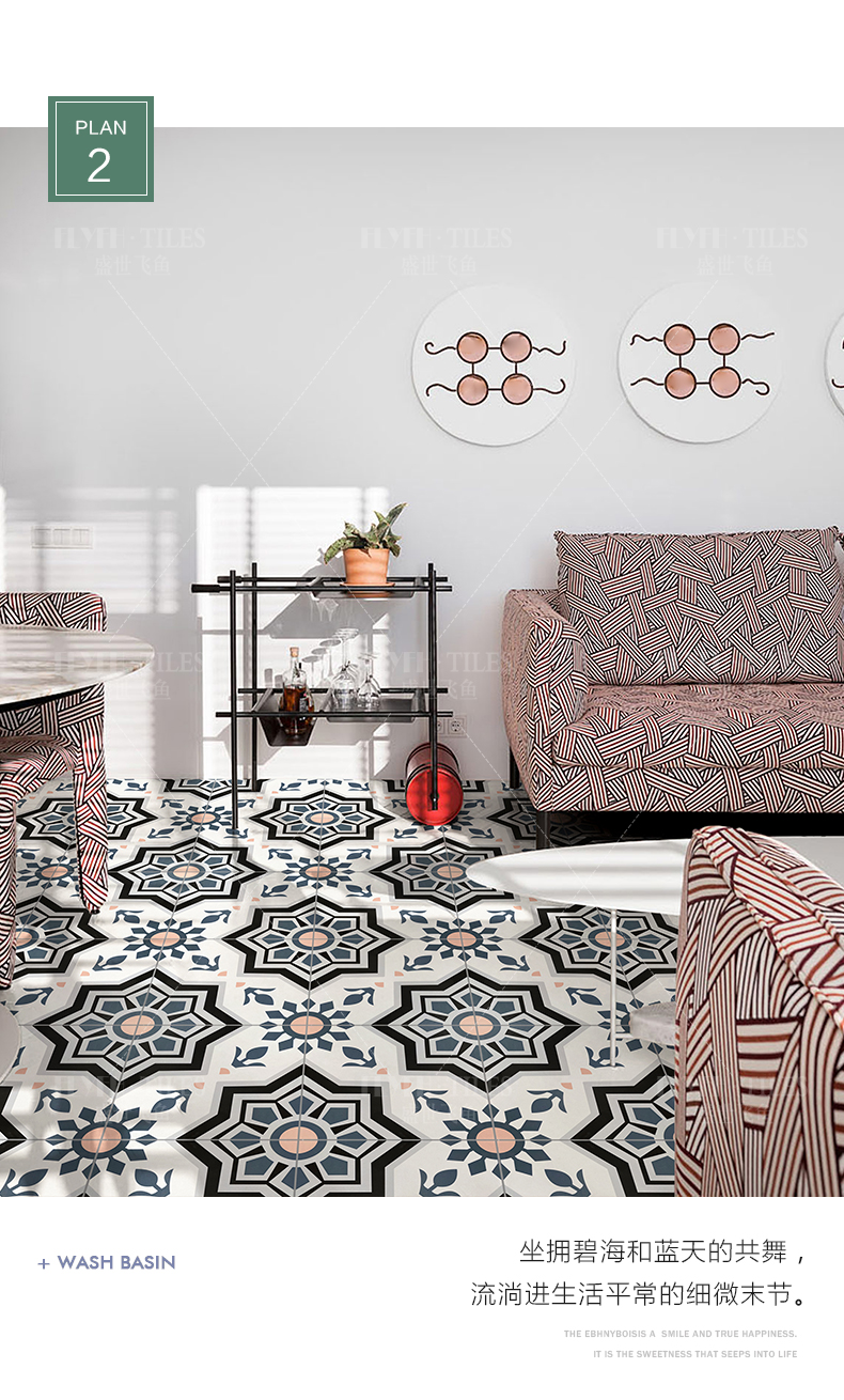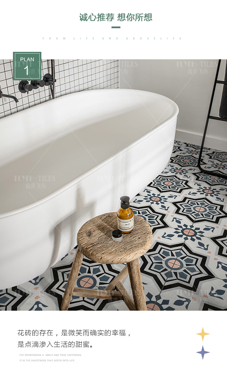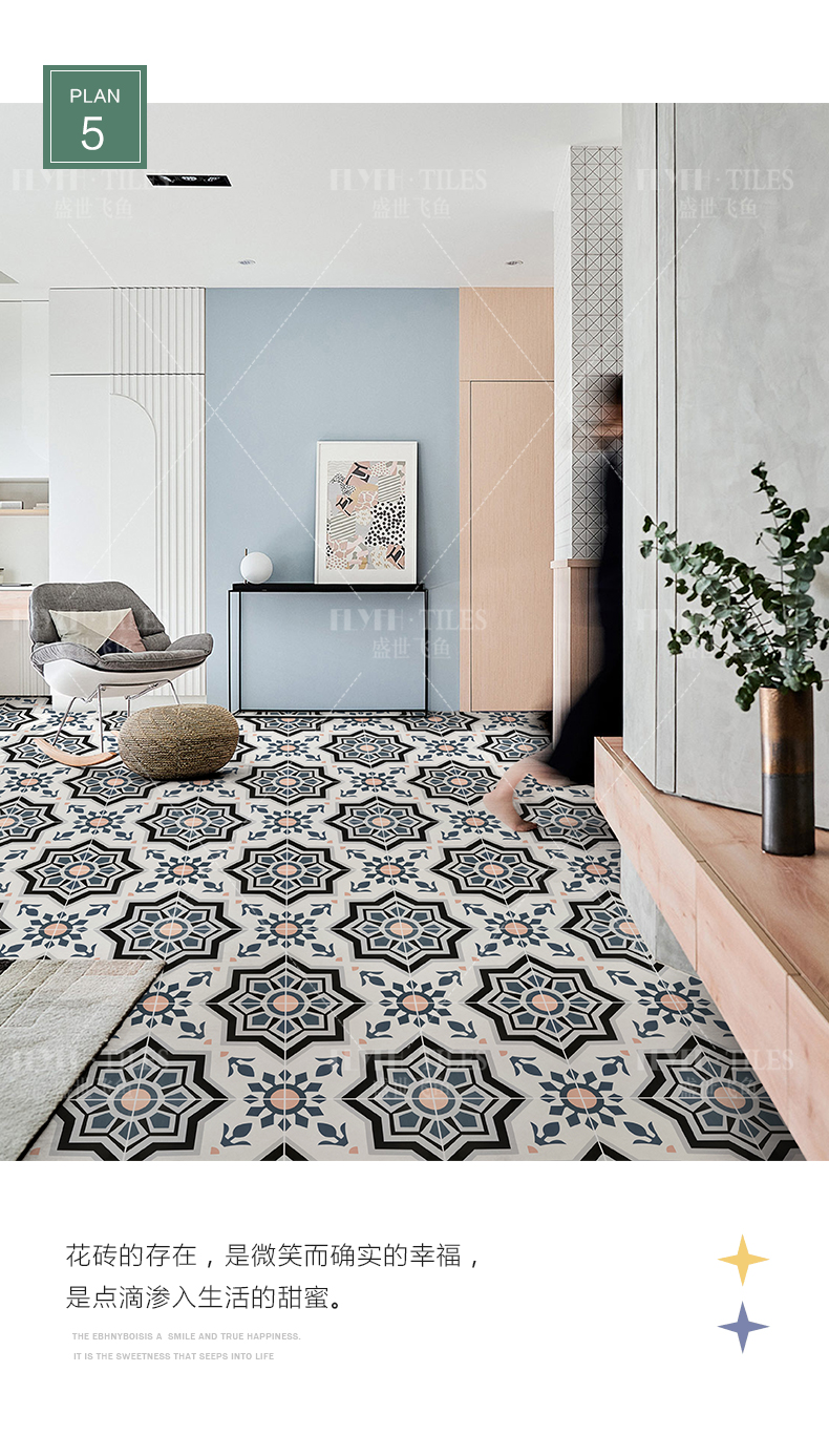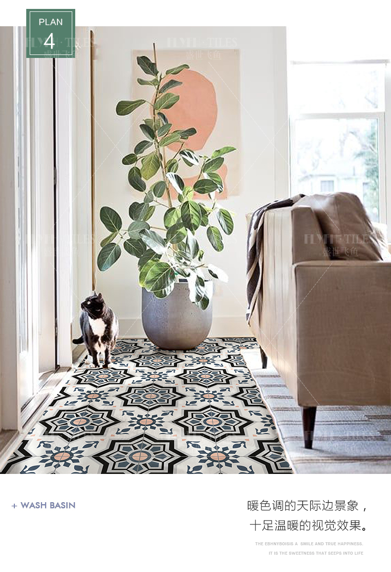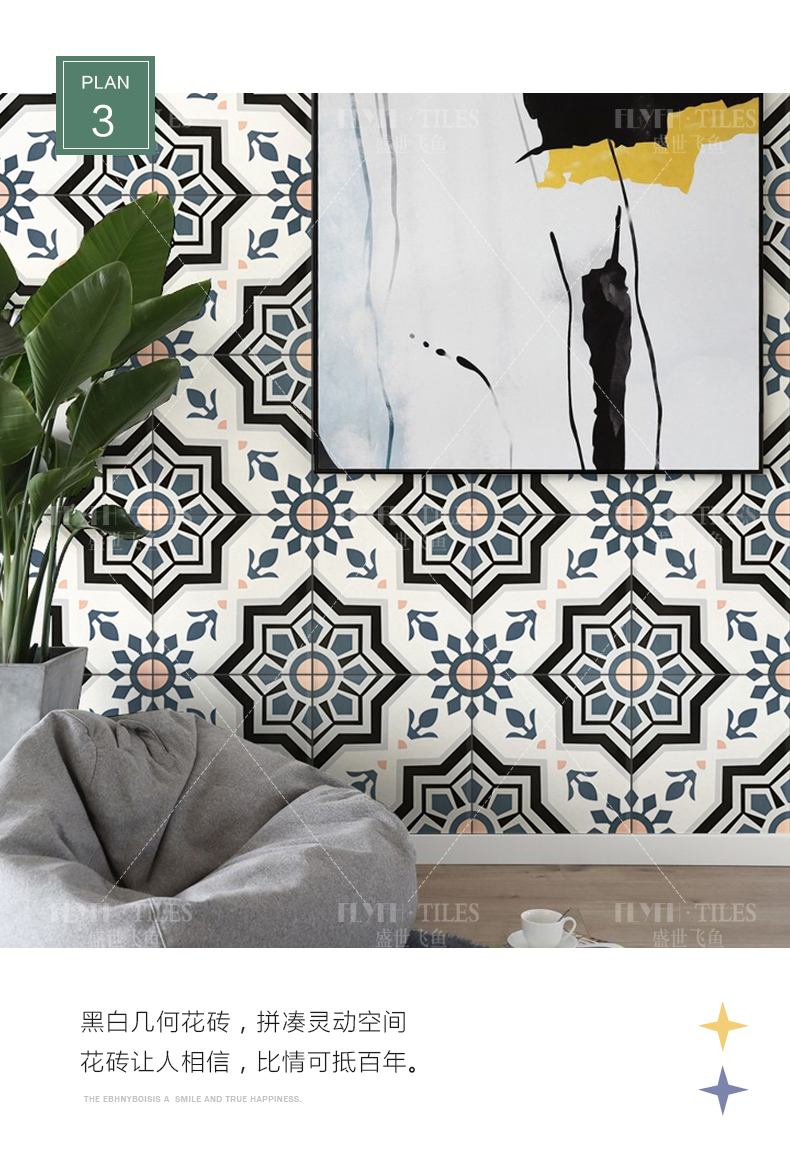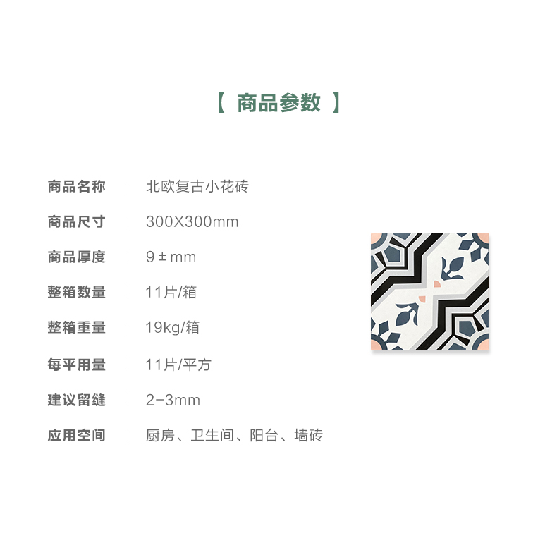 摩洛哥复古花砖300x300防滑全瓷地砖
