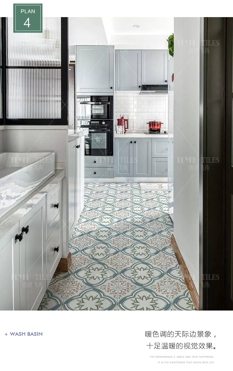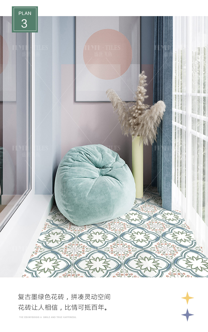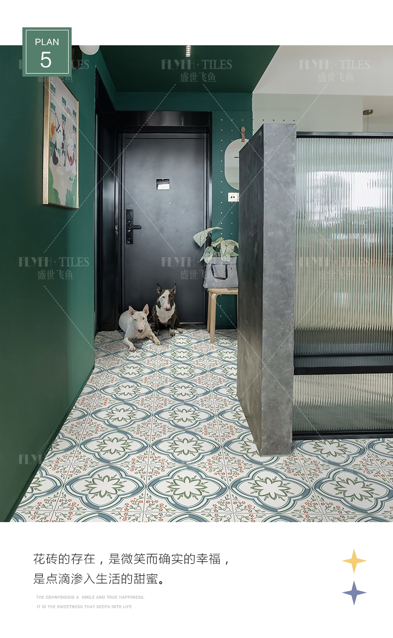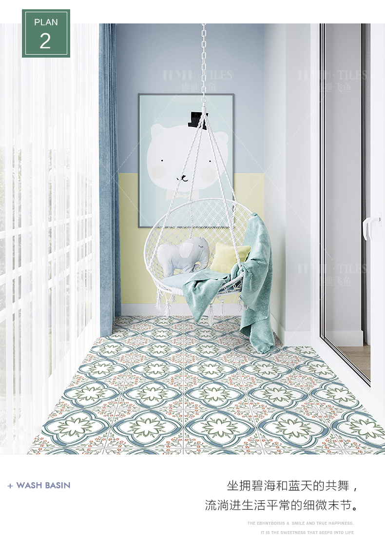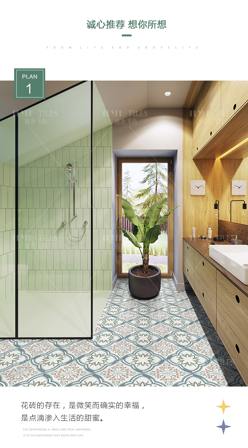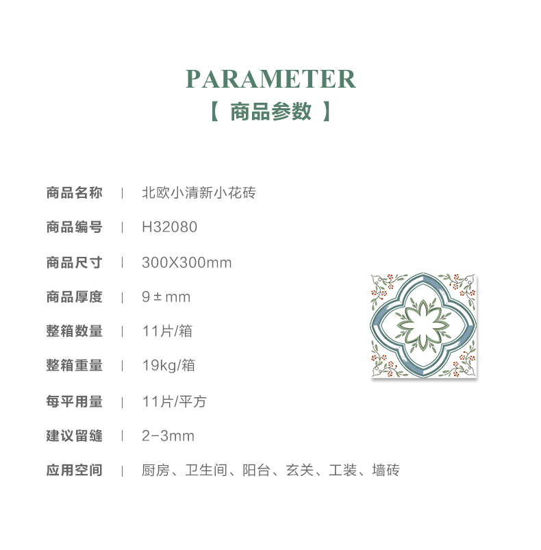 北欧小清新阳台玄关小花砖300X300瓷砖