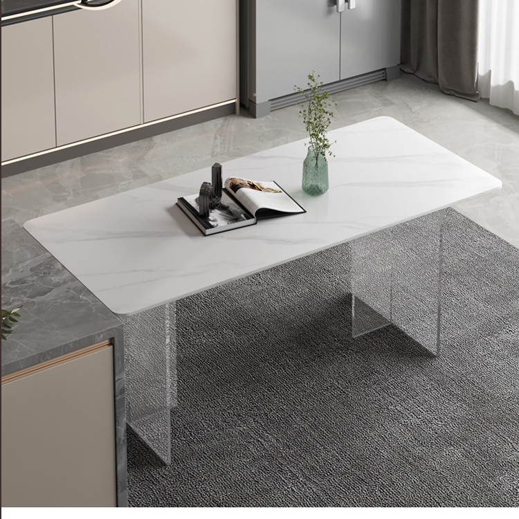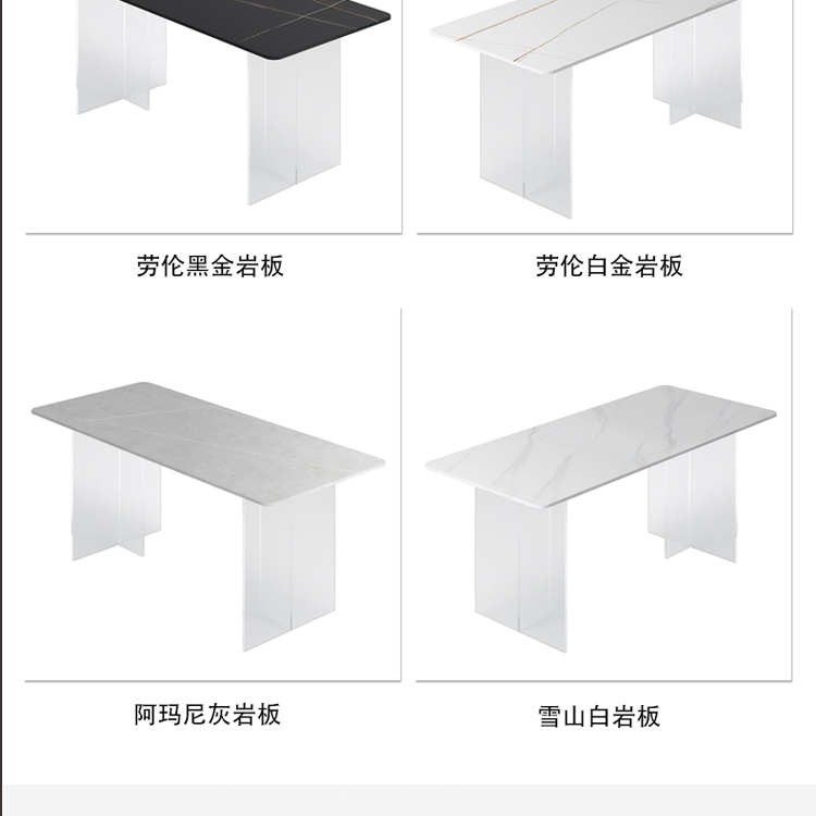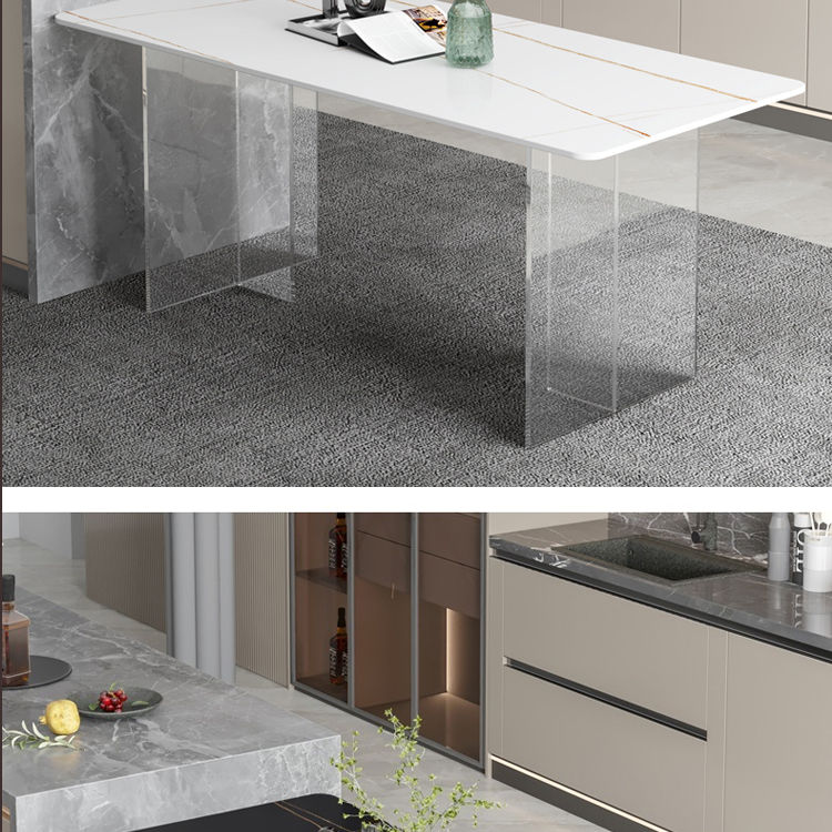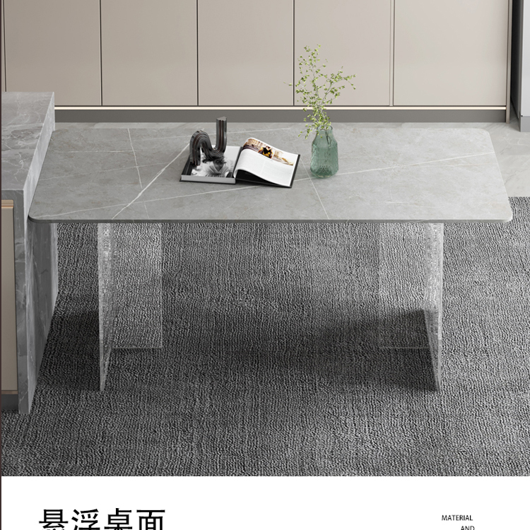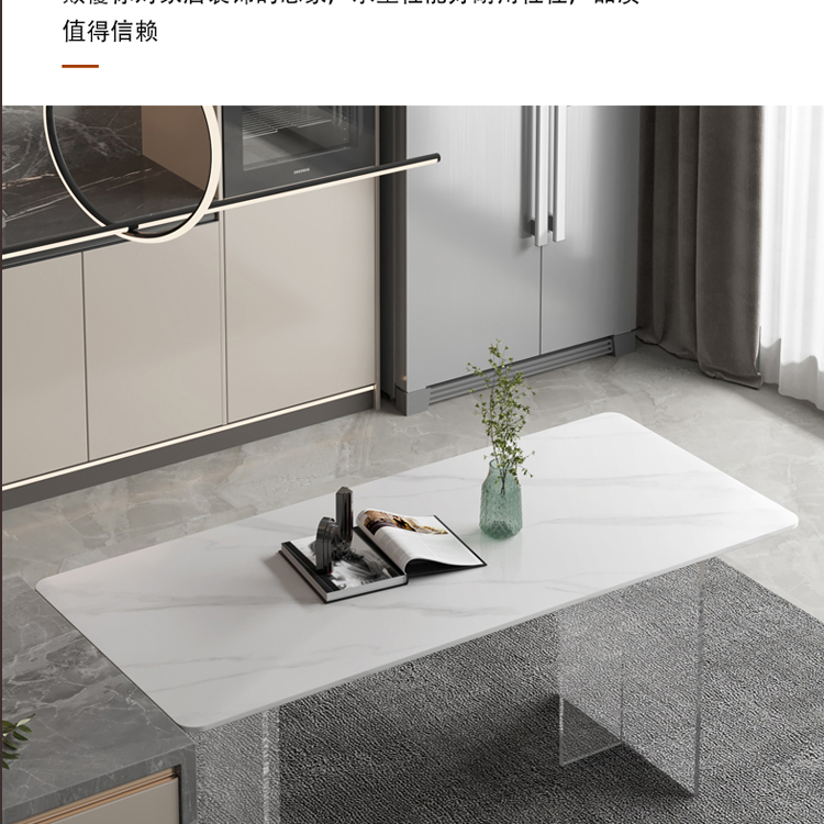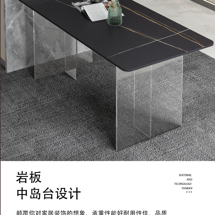 简约亚克力岩板餐桌网红餐厅中岛台悬浮长方形透明桌脚岩板饭桌
