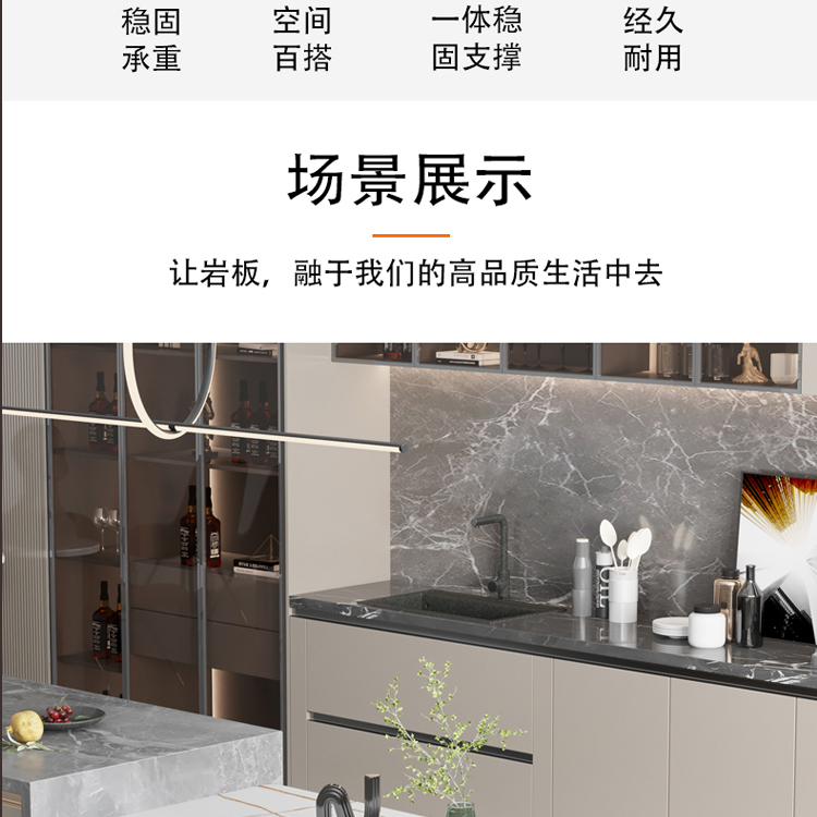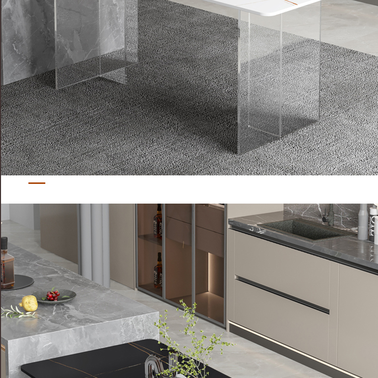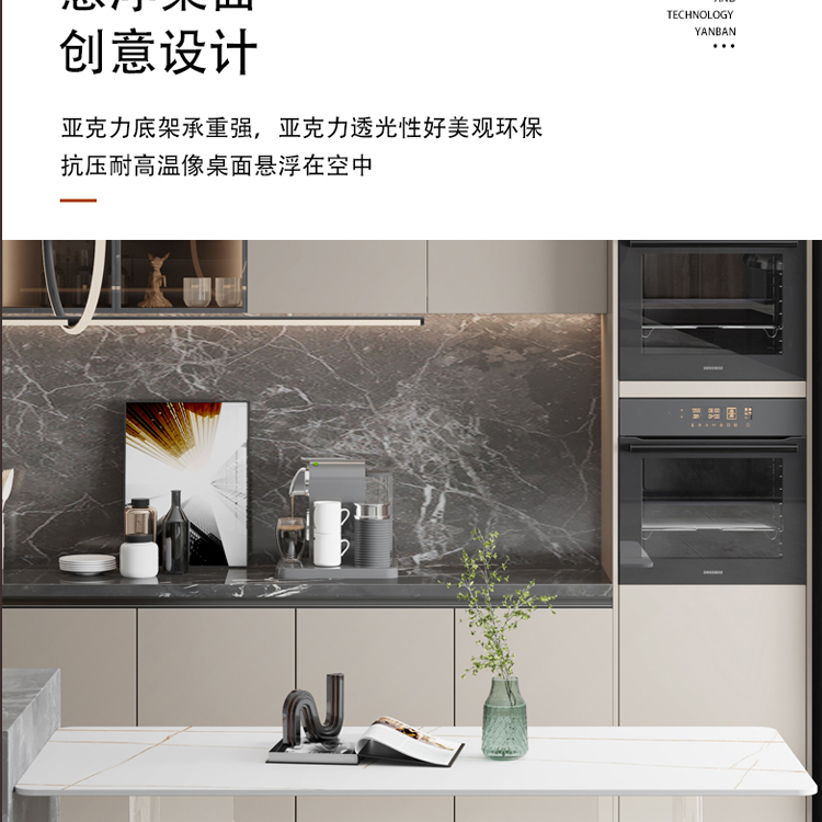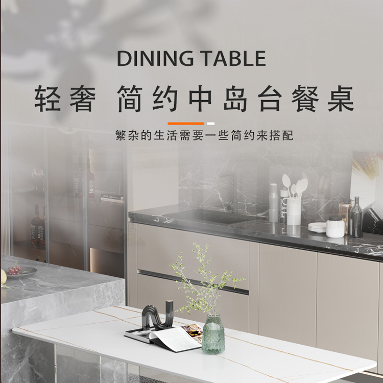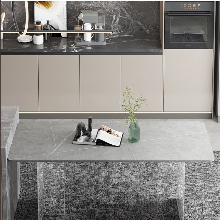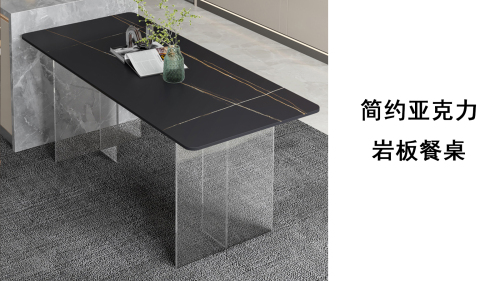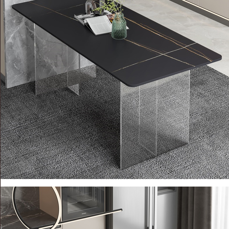 简约亚克力岩板餐桌网红餐厅中岛台悬浮长方形透明桌脚岩板饭桌
