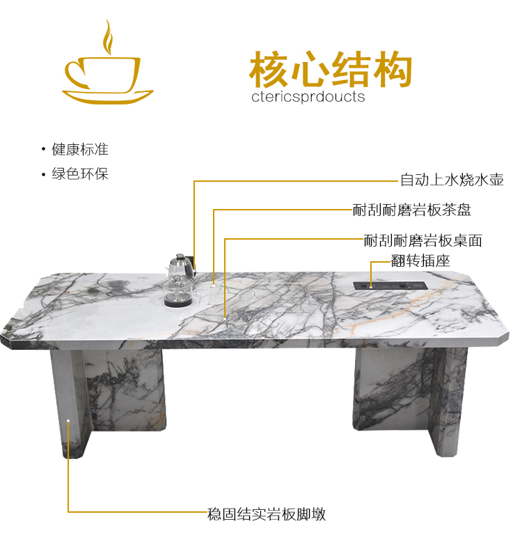 轻奢简约泡茶桌椅组合办公现代功夫高端岩板户外茶台高级定制