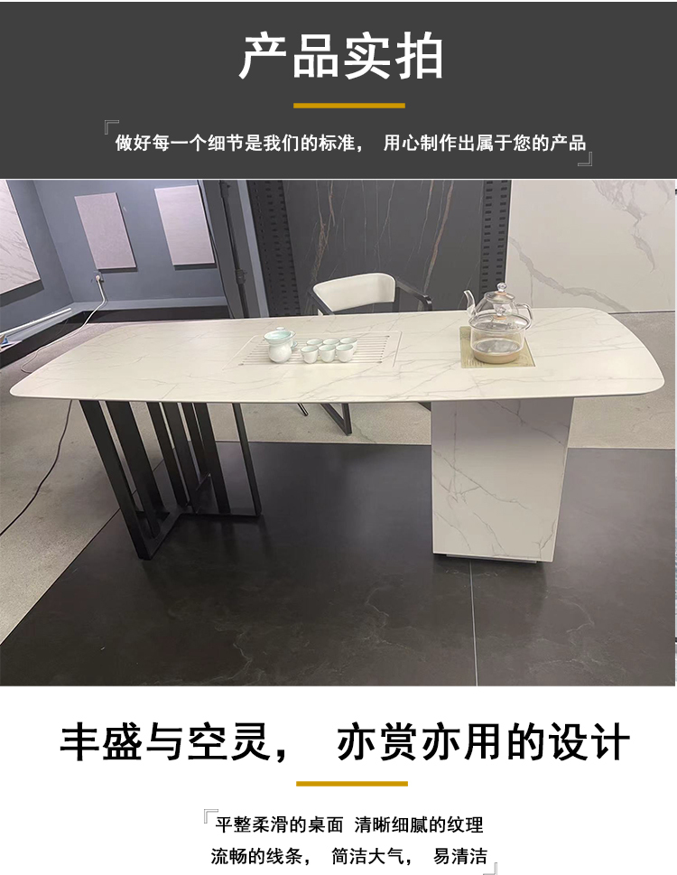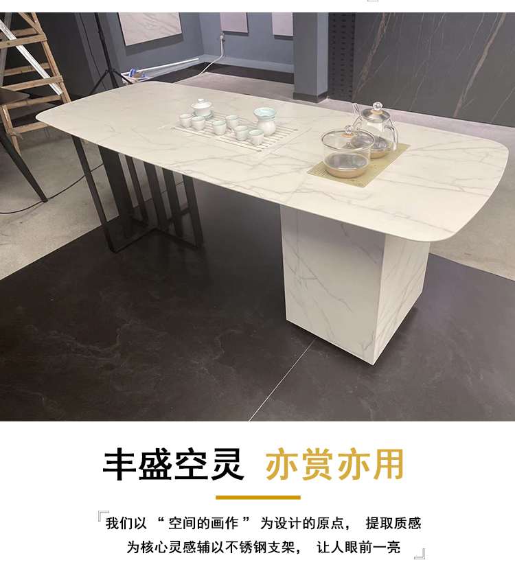 斯卡拉白岩板茶台小户型茶桌储物茶桌椅组合轻奢高端茶台