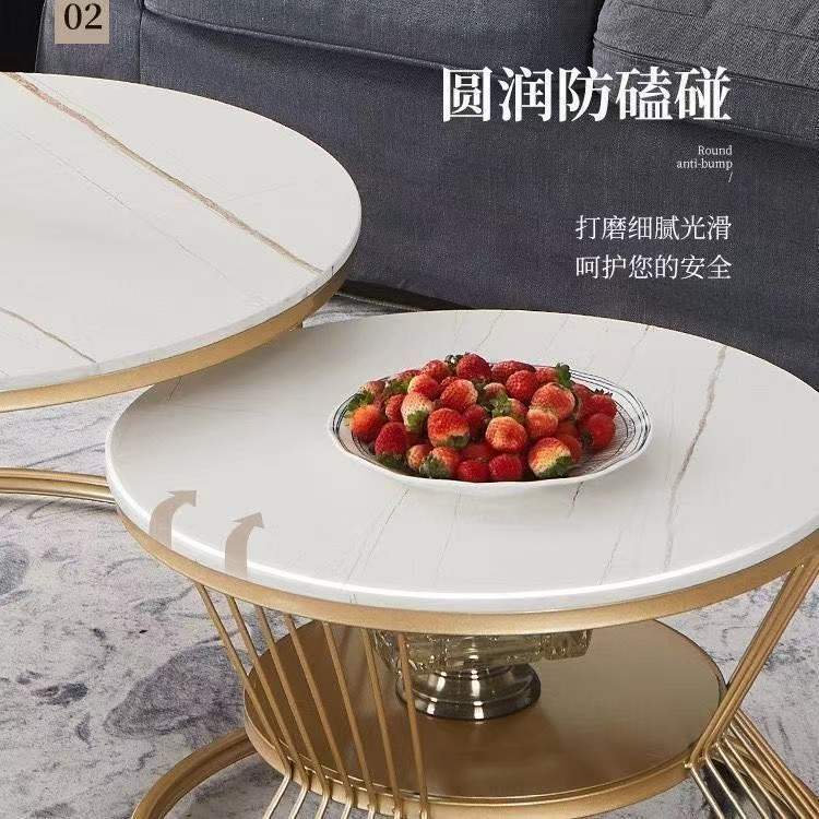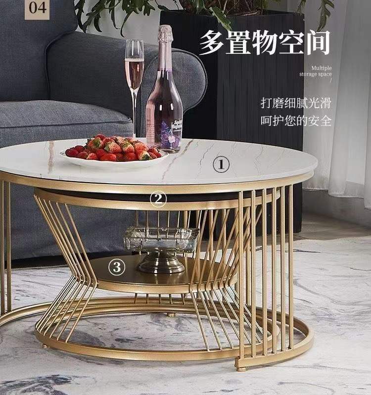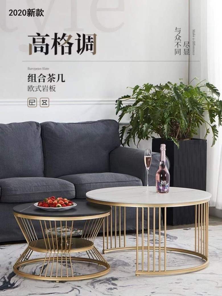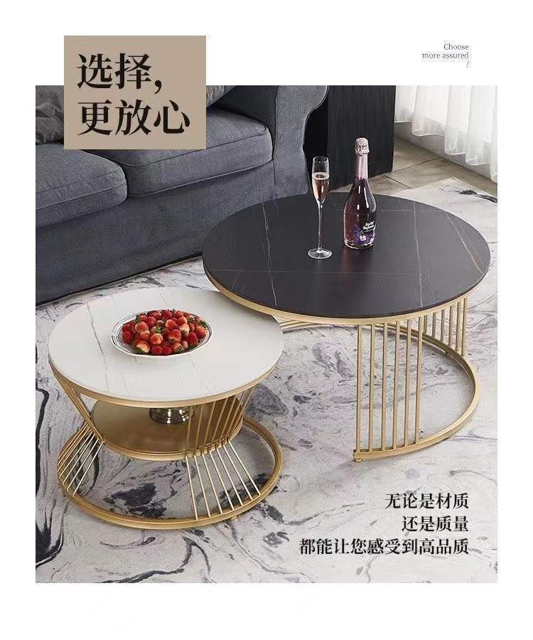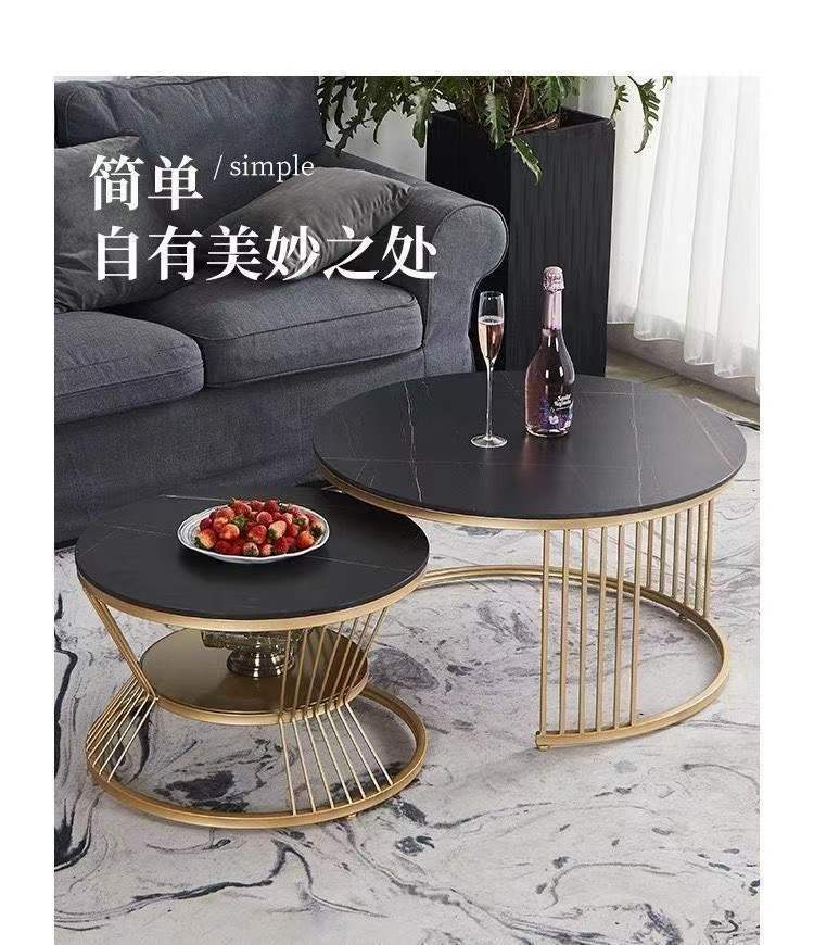 轻奢岩板圆形茶几组合小户型现代简约北欧大理石小茶几桌