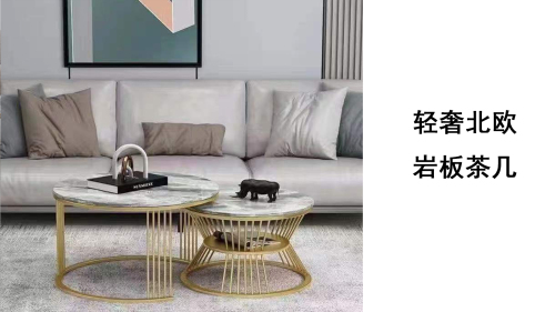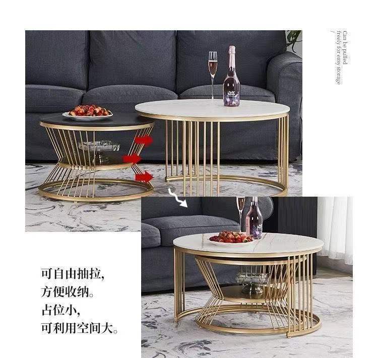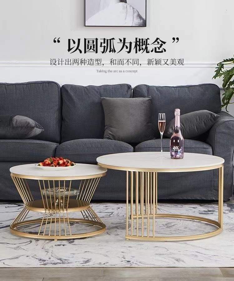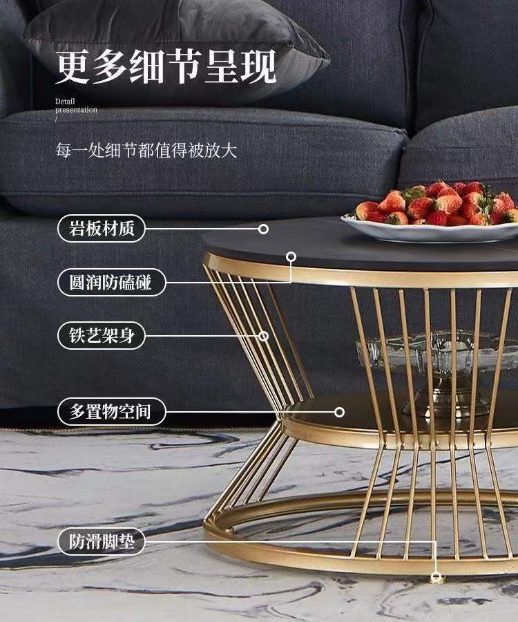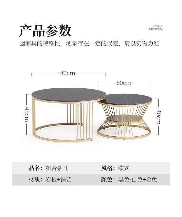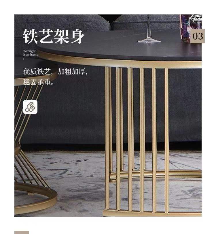 轻奢岩板圆形茶几组合小户型现代简约北欧大理石小茶几桌