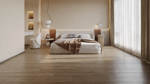 弗蕾娅·木系列产品采用全球领先的自然生态釉,高温煅烧后在产品表面形成纳米级高清保护层,拥有天然实木地板打蜡抛光后的10°柔润光泽,0渗污,0甲醛排放,持久耐用,视觉舒适,安全更健康。