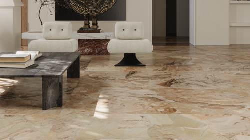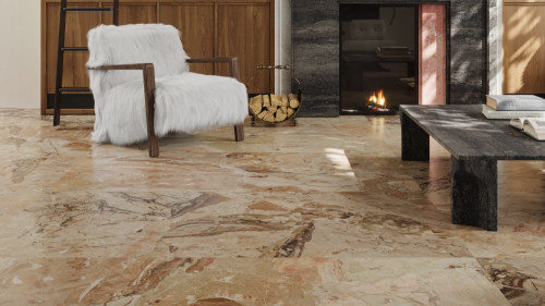 设计创意:源自意大利北部的布雷西亚地区的名贵大理石——布雷西亚,复古温暖的黄调,并带有灰色或棕色的色彩及丰富张扬的纹理变化,散发出古典、高雅的贵族气息,适用于营造温馨和奢雅的空间氛围。