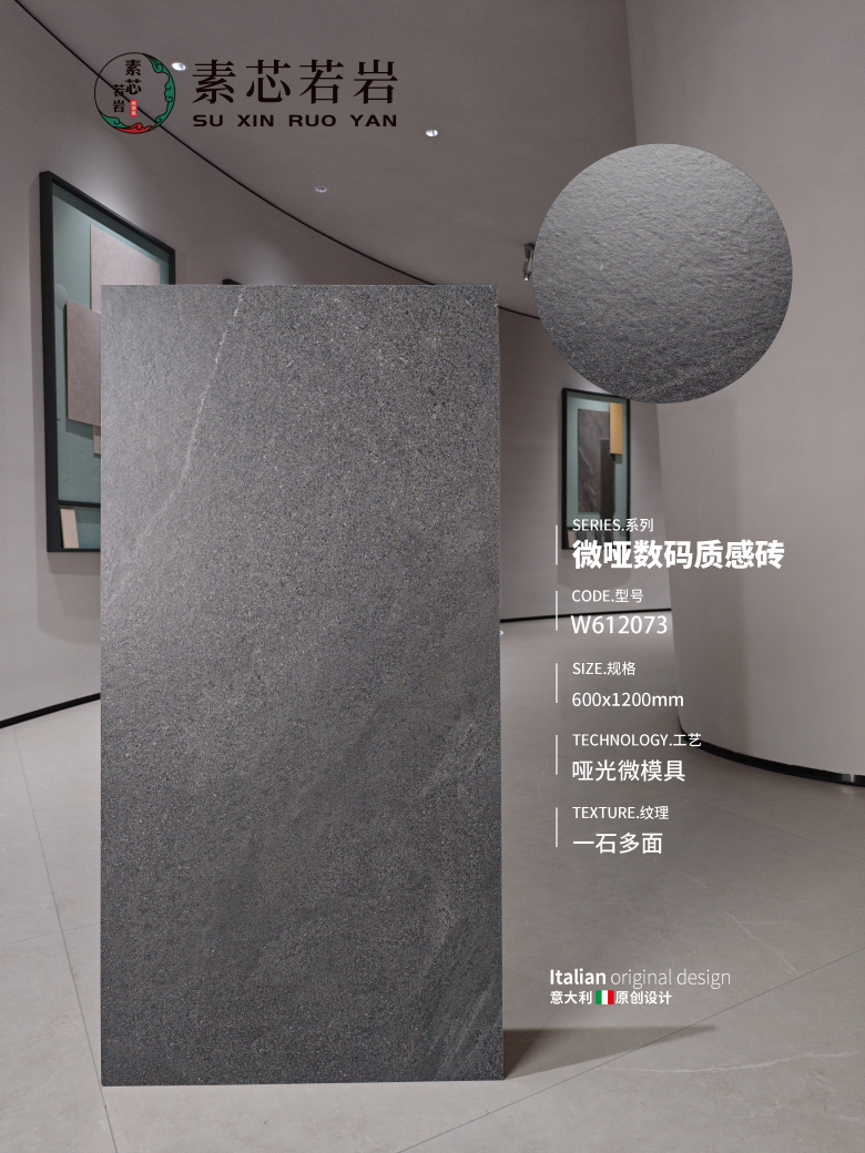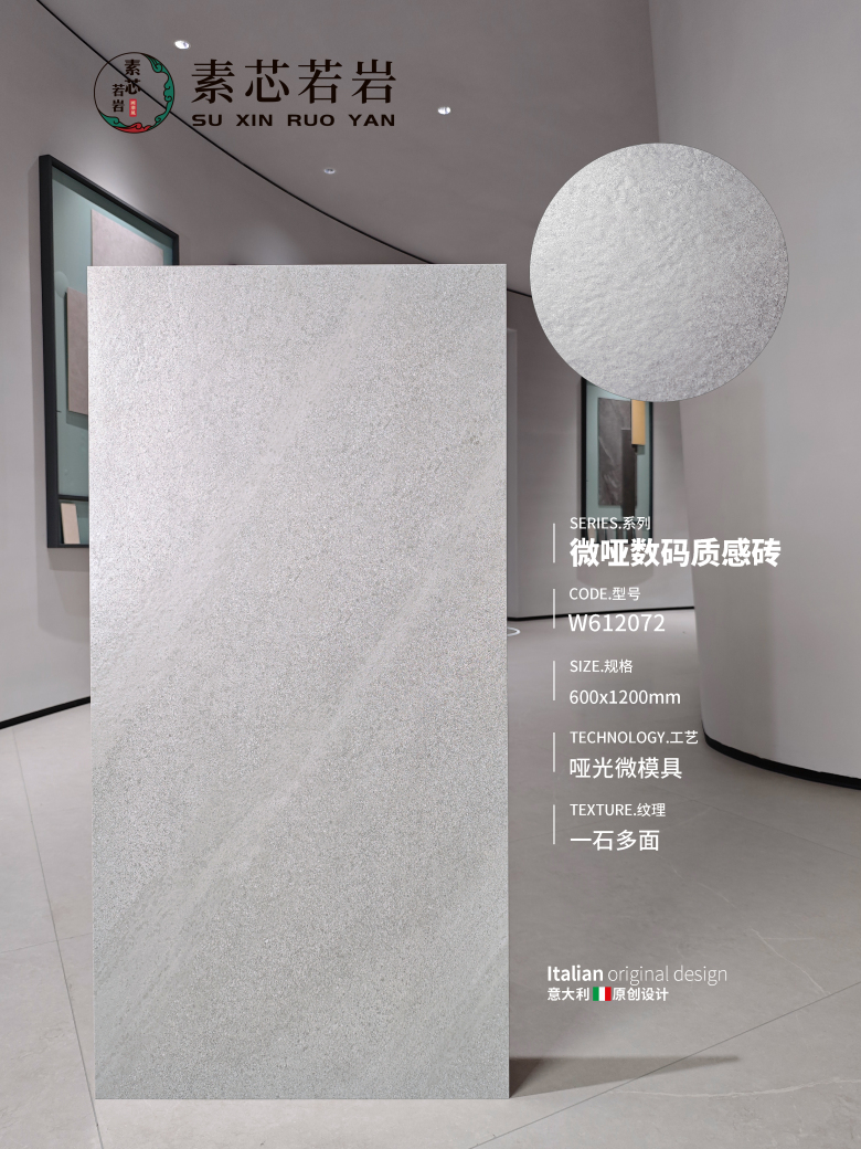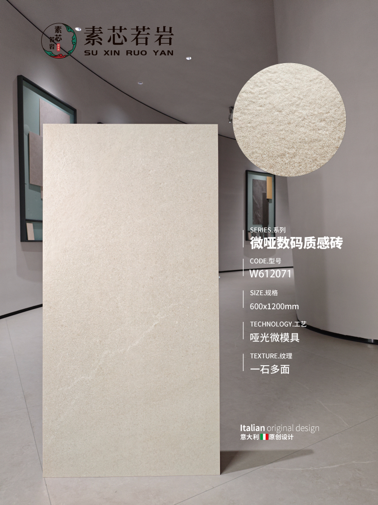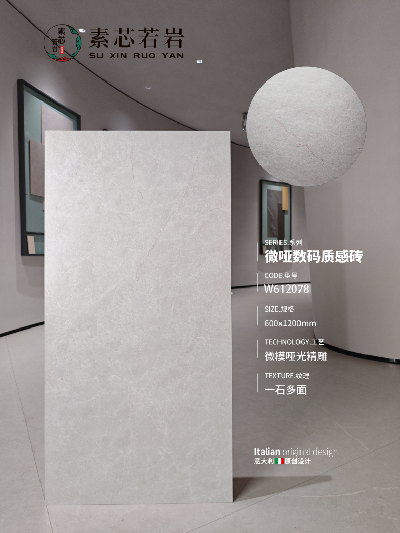 素心若岩微哑天脉石系列以当下流行的砂岩、莱姆石、大理石为设计灵感,采用哑光模具工艺和微模哑光精雕工艺匠心打造质感微哑面,砖面保留着石材浓烈的纹理和质感,细微的纹理变化无穷,明暗错落有致,层次丰富,触感柔软细腻,又蕴含细微颗粒感。纹理自然、质朴,于繁复中还原生活的纯粹,打造高性价比工艺叠加质感仿古砖。