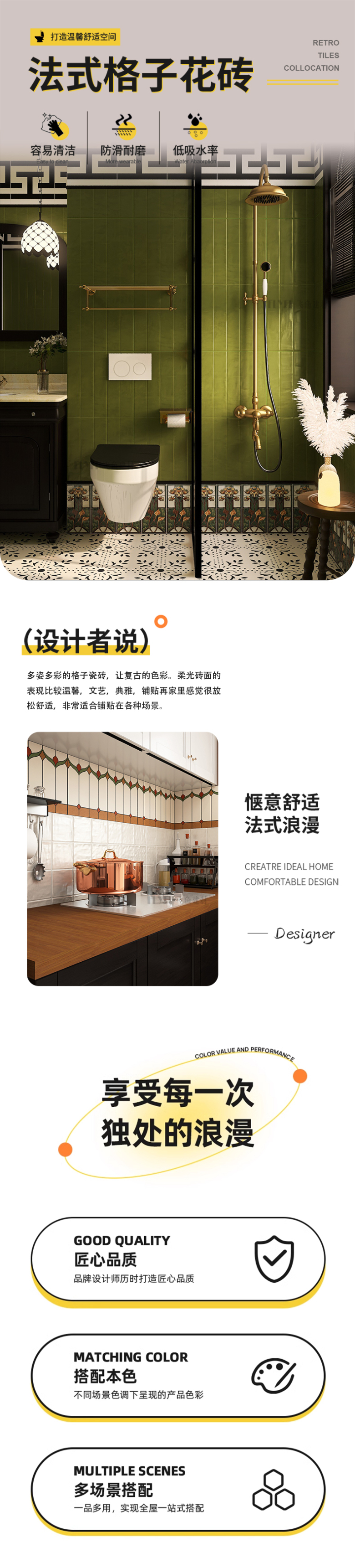 法式复古卫生间瓷砖贝壳珍珠釉格子砖