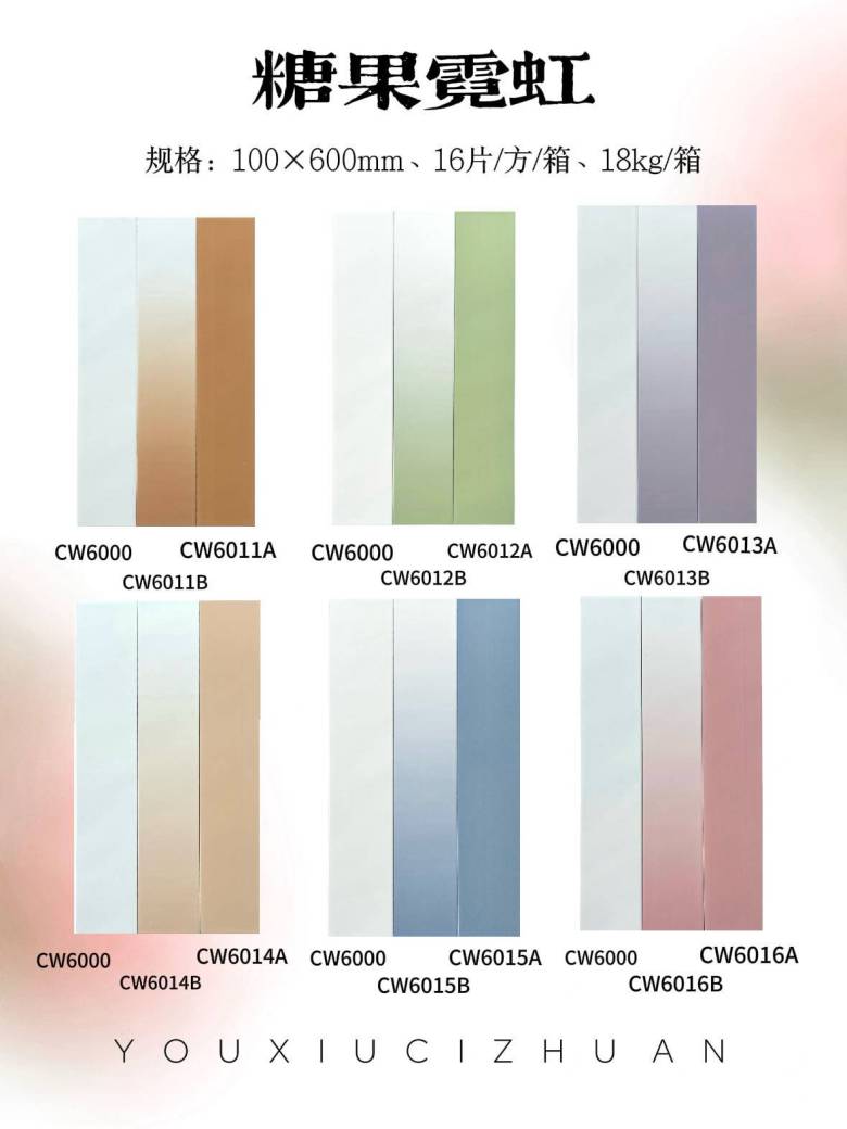 釉面工艺,渐变特色,颜色多彩却柔和不刺眼,清新自然为主,适合室内墙面,浴室、客厅、店铺、民宿等。